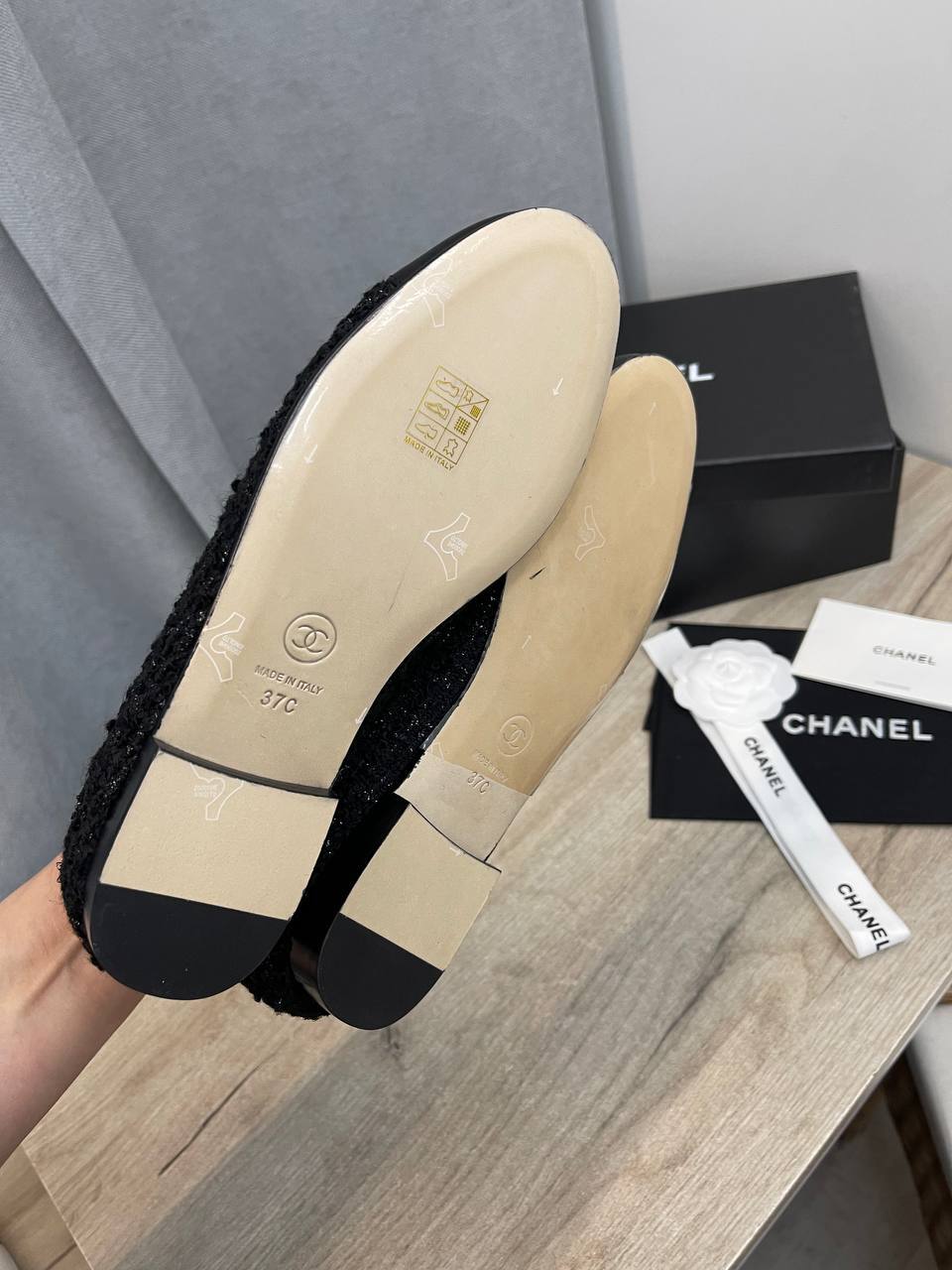 Эти балетки для женщин, которые стремятся подчеркнуть свою индивидуальность, станут настоящей находкой в гардеробе. Их лаконичный дизайн позволяет сочетать Chanel балетки с различными нарядами — от легких платьев до классических брюк. С каждым шагом вы будете ощущать, как мягкая подошва обнимает ваши ноги, даря непревзойденный комфорт. Кроме того, изысканная отделка и уникальные детали делают их настоящим произведением искусств, которое не оставит равнодушными любителей люксовой моды.