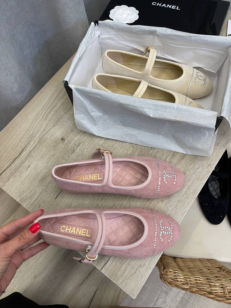 Каждая пара балеток от Chanel воплощает в себе философию бренда, основанную на безупречном качестве и изысканном дизайне. Изготовленные из высококачественных материалов, они дарят ощущение легкости и свободы. Удобная подошва и продуманная форма делают каждую прогулку комфортной, а элегантный силуэт прекрасно подчеркивает женственность. Эти балетки идеально подойдут для стильных женщин, которые ценят высокую моду и стремятся выделяться из толпы.