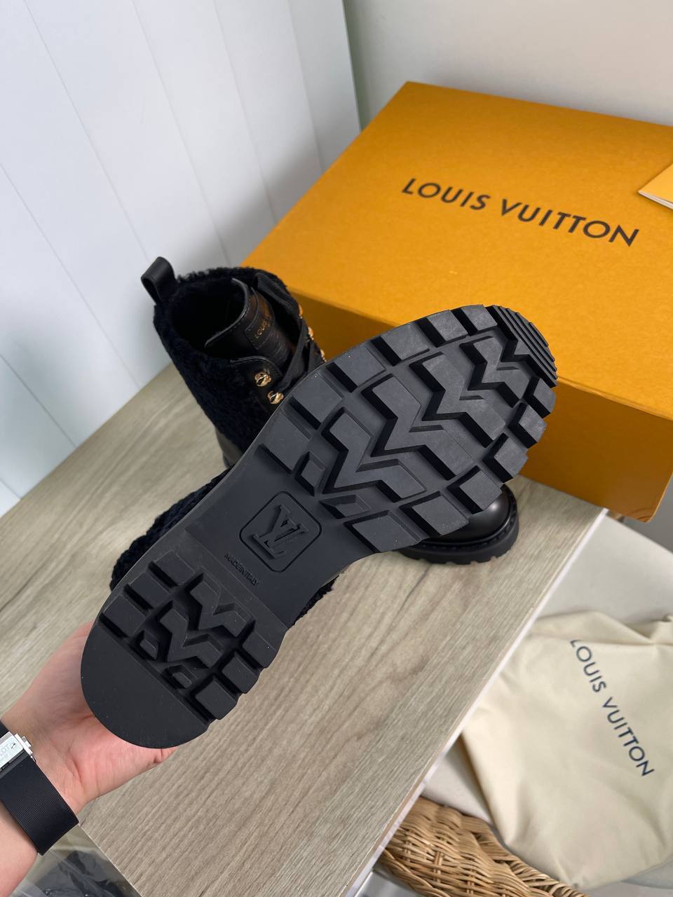 Каждый шаг в этих ботинках становится уверенным и стильным, благодаря продуманной конструкции и использованию высококачественных материалов. Бренд Louis Vuitton, известный своими инновациями и традициями, предлагает своим поклонникам нечто большее, чем просто обувь — это возможность выразить свою личность и статус. Удобство и элегантность в сочетании с характерным дизайном делают ботинки идеальным выбором для мужчин, стремящихся выделиться в любой ситуации. Они прекрасно смотрятся как с классическими брюками, так и с более расслабленными образами, что делает их универсальным элементом гардероба.