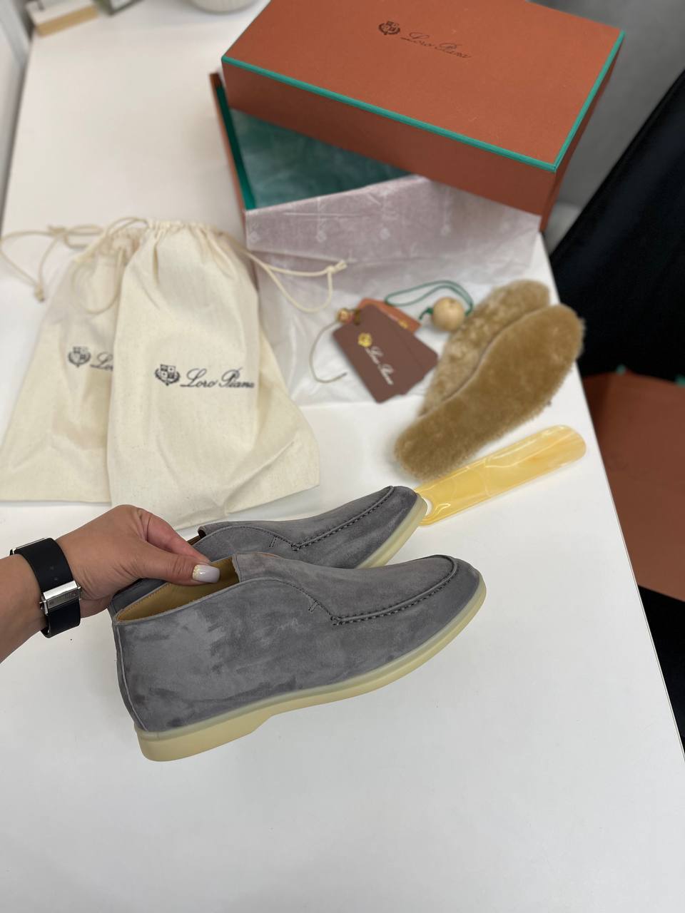 Элегантные женские серые ботинки Loro Piana для стильных образов