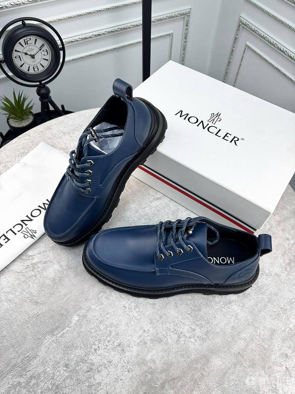 Кожаные ботинки темно-синие Moncler BP-944045 для стильных мужчин