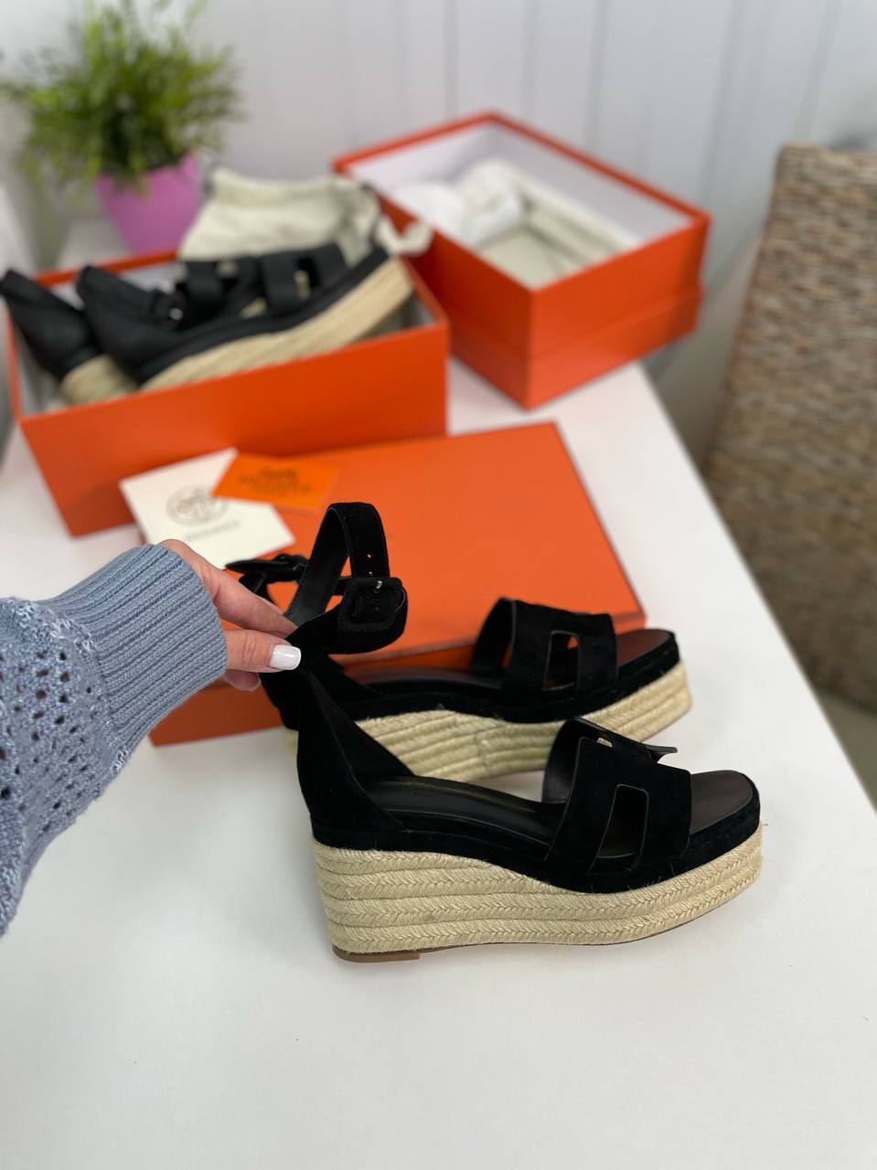 В заключение, премиум эспадрильи Hermes Elda BP-30301 — это не просто обувь, а настоящая находка для тех, кто ценит стиль и качество. Они идеально подойдут как для летних прогулок по городу, так и для вечерних выходов, добавляя вашему образу нотки роскоши и утонченности. Выбирая эту модель, вы делаете акцент на своем безупречном вкусе и стремлении к лучшему. Не упустите возможность стать обладателем этих эспадрильей и подчеркнуть свою индивидуальность с помощью одного из самых узнаваемых брендов в мире моды.