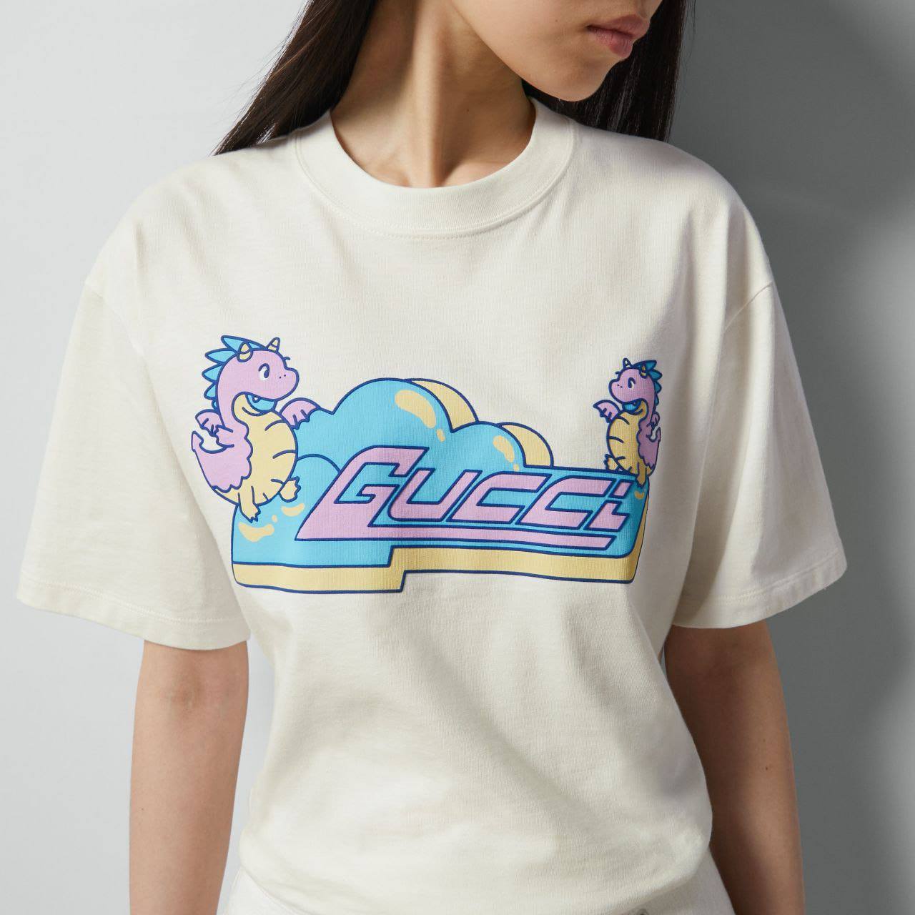 Модная футболка от Gucci не только стильна, но и универсальна. Она легко комбинируется с различными предметами гардероба, от классических джинсов до элегантных юбок. Вы можете создать множество образов, варьируя аксессуары и обувь. С такой футболкой вы всегда будете выглядеть актуально и стильно, независимо от времени года или повода. Это идеальный элемент для создания многослойных образов, который добавит изюминку в ваш повседневный стиль.