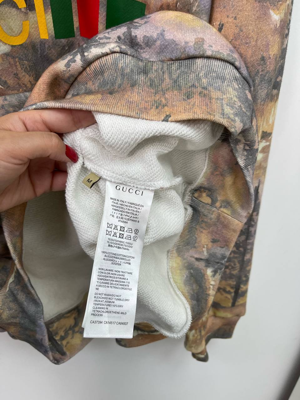 Изготовленный из высококачественных материалов, худи обеспечивает невероятный комфорт и долговечность. Его мягкая текстура обнимает тело, создавая ощущение уюта, что делает его идеальным для повседневной носки. Этот элемент гардероба легко комбинируется с различными стилями, будь то спортивный или более классический, благодаря чему он становится универсальным решением для модников. К тому же, уникальный дизайн и логотип Gucci, выполненный с безупречной точностью, добавляют этому худи особый шарм, позволяя выделиться из толпы.