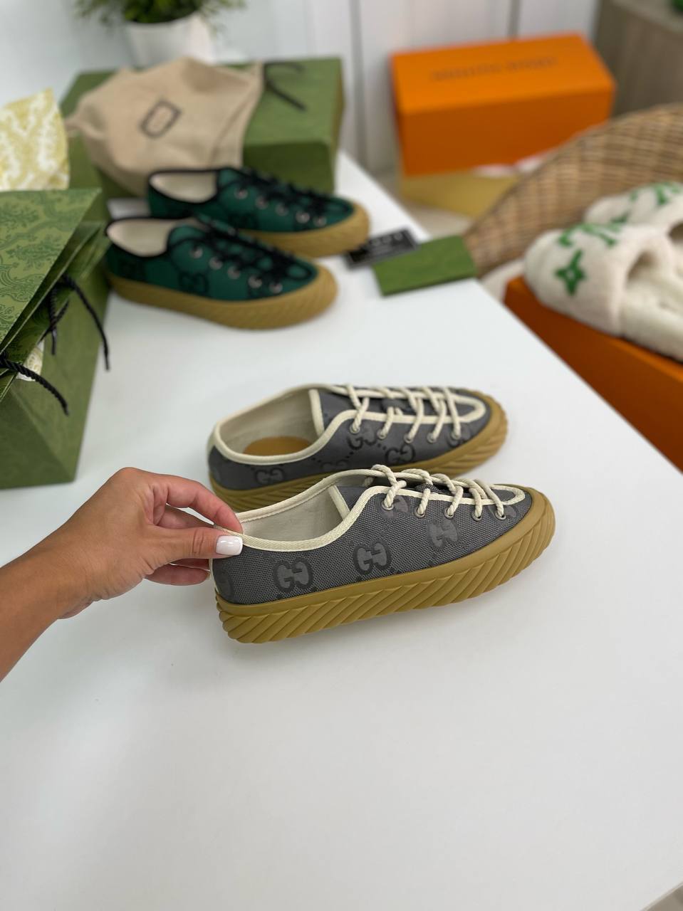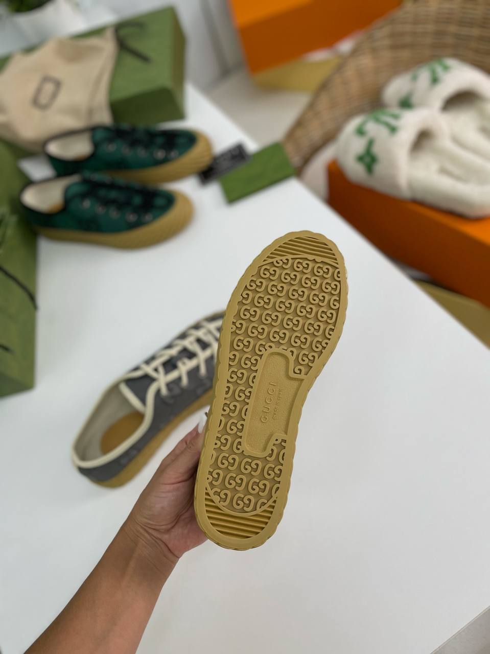 В мире моды, где каждая деталь имеет значение, кеды от Gucci становятся не просто обувью, а настоящим произведением искусства. Эти коллекционные кеды, созданные для тех, кто ценит стиль и качество, идеально вписываются в гардероб современных модников. Они сочетают в себе элементы классики и современные тенденции, что делает их универсальным аксессуаром для любого образа. Каждый шаг в таких кедах — это шаг по красной дорожке, где стиль и элегантность идут рука об руку, создавая неповторимый шарм.