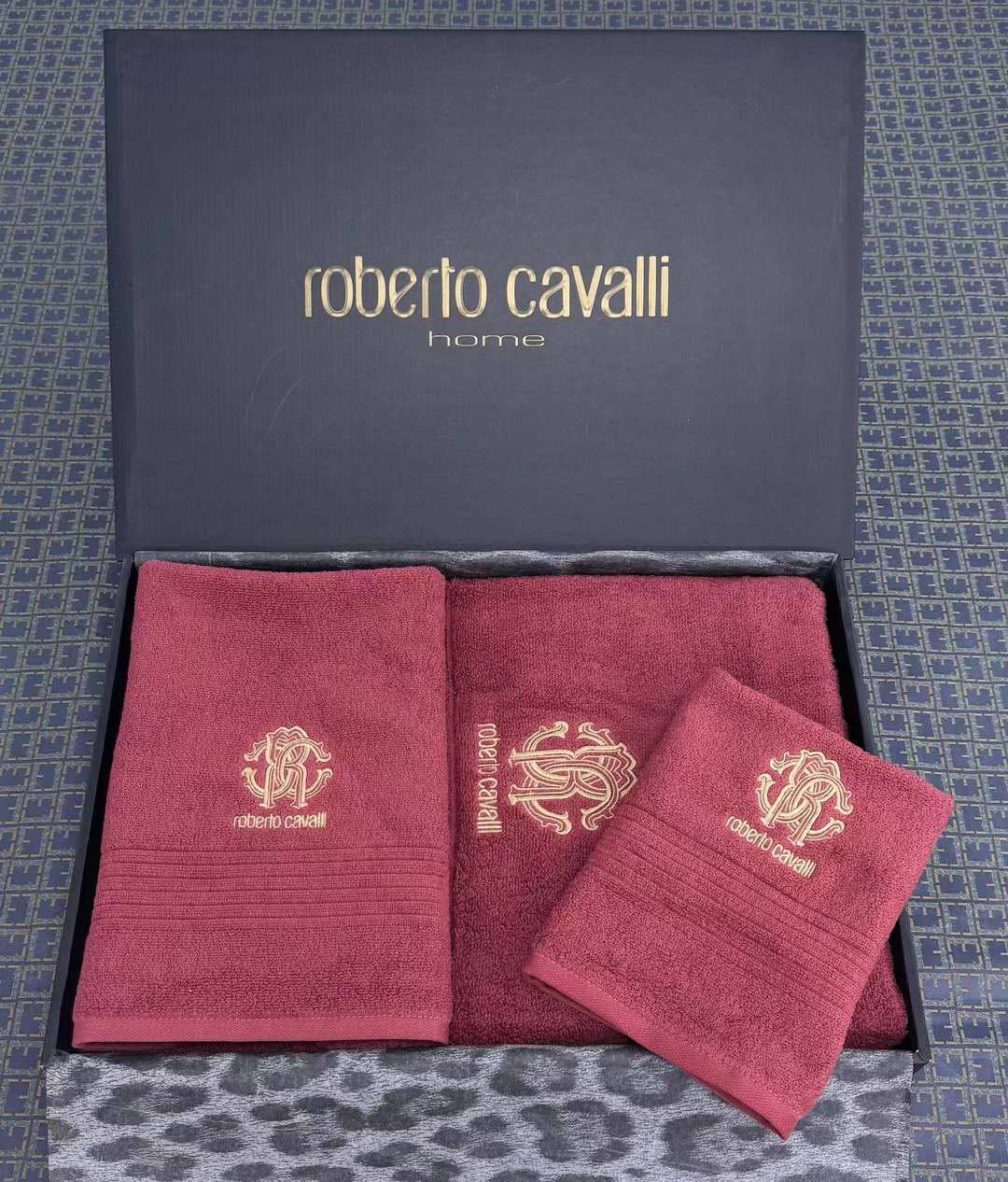 Полотенца комплект красно-пурпурный от Roberto Cavalli для вашего дома