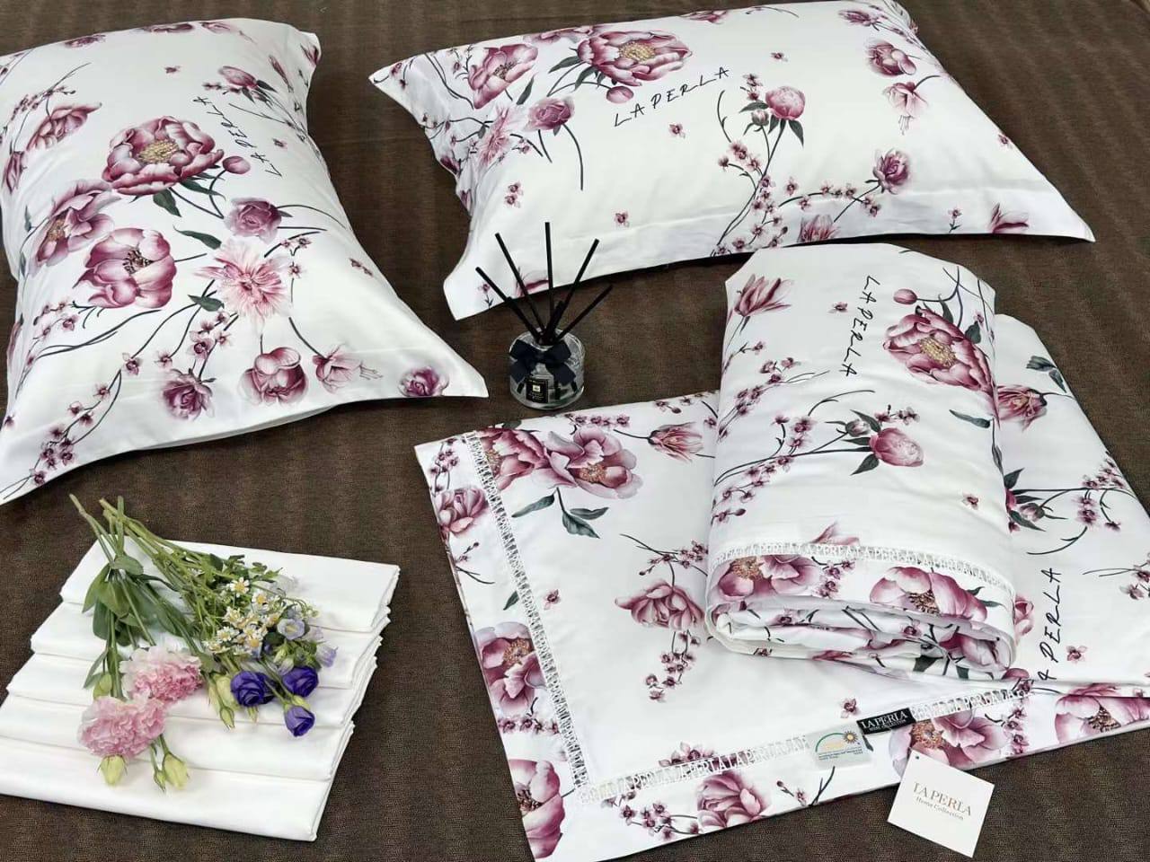 Каждая деталь в этом комплекте продумана до мелочей, чтобы дарить вам максимальное удовольствие во время сна. Текстиль, использованный в производстве, отличается мягкостью и приятной текстурой, что позволяет наслаждаться каждым моментом отдыха. La Perla, как известный бренд, ассоциируется с люксовыми изделиями, и этот комплект не стал исключением. Он привносит в ваш дом атмосферу роскоши и стиля, что делает его идеальным выбором для модников и ценителей качественного текстиля.