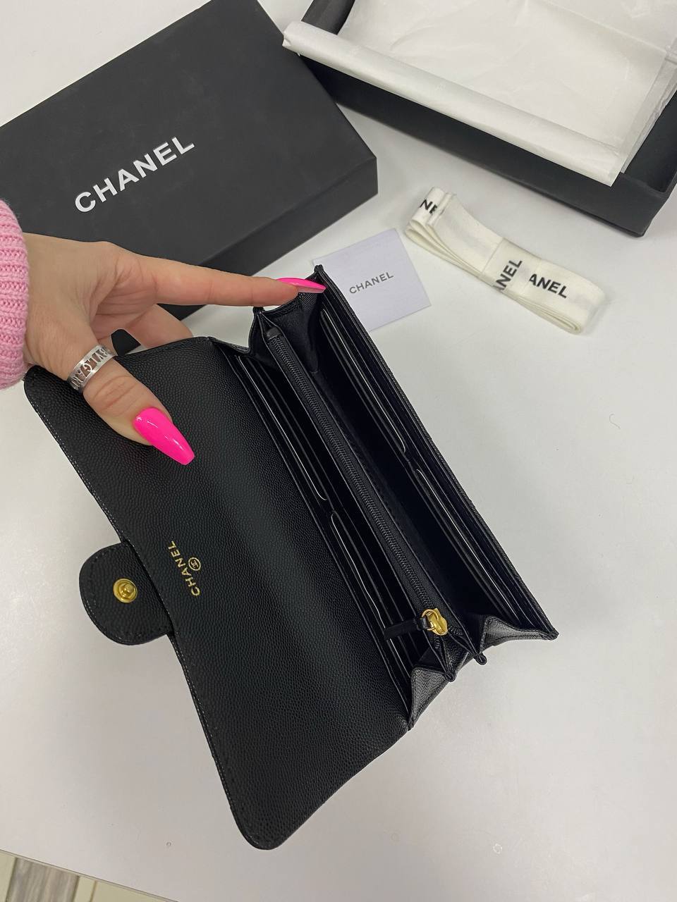 Кошелек от Chanel - это не просто предмет, в который можно положить деньги и карты. Это настоящая инвестиция в стиль и имидж, который подчеркнет вашу уникальность. Благодаря продуманному дизайну, он легко помещается в любую сумку, а его компактные размеры позволяют носить его с собой везде. Внутренние отделения организованы так, чтобы вы могли удобно разместить все необходимые вещи, будь то кредитные карты, визитки или наличные. Такой аксессуар станет незаменимым спутником как для деловых встреч, так и для вечерних выходов в свет.