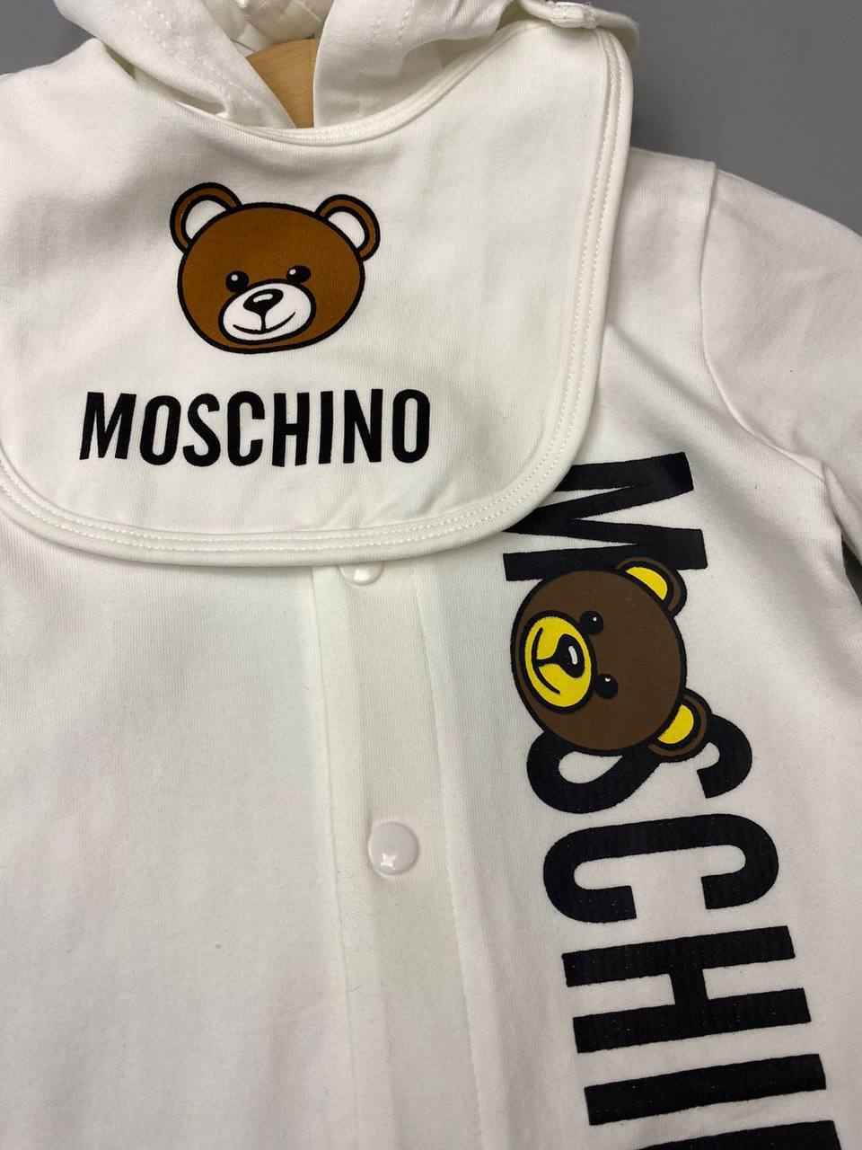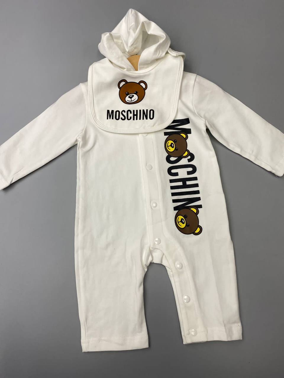 Каждая деталь этого костюма продумана до мелочей. Элегантные линии, гармоничные цветовые сочетания и стильные акценты делают его идеальным выбором для юных модников. Moschino всегда славился своим креативным подходом к дизайну, и данный костюм не стал исключением. Он сочетает в себе классические элементы с современными трендами, что позволяет ему оставаться актуальным в любой модной эпохе. Такой наряд способен превратить любое событие в настоящий праздник стиля.