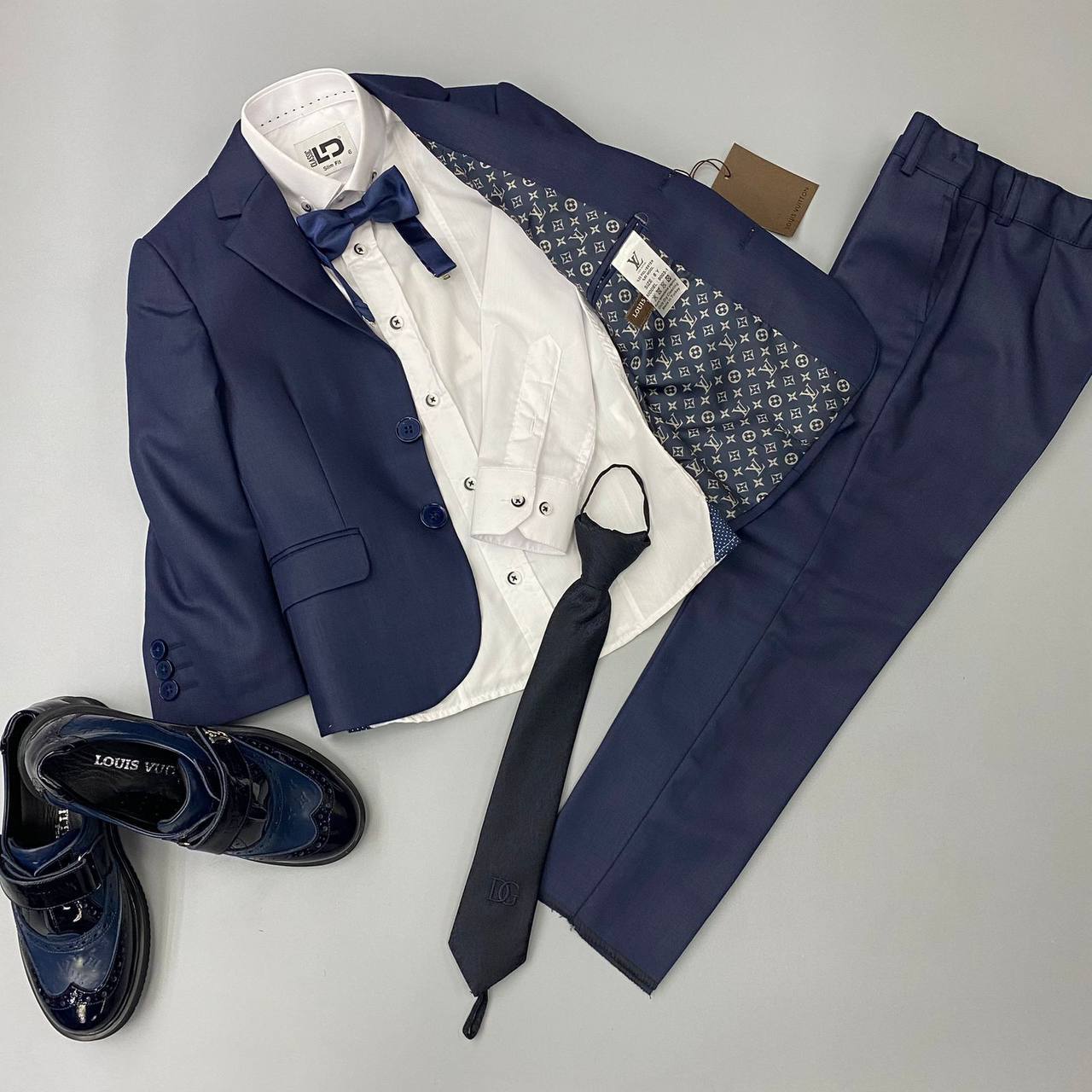 Костюм от знаменитого бренда Louis Vuitton — это не просто одежда, это целая философия, основанная на высококачественных материалах и безупречном дизайне. В нем сочетаются традиции и современные тренды, что делает каждую деталь по-настоящему уникальной. Мальчики, облаченные в этот наряд, будут чувствовать себя настоящими джентльменами, готовыми покорять мир. Прекрасное сочетание цветов и текстур создает эффектный образ, который привлечет внимание окружающих и станет предметом зависти среди сверстников.