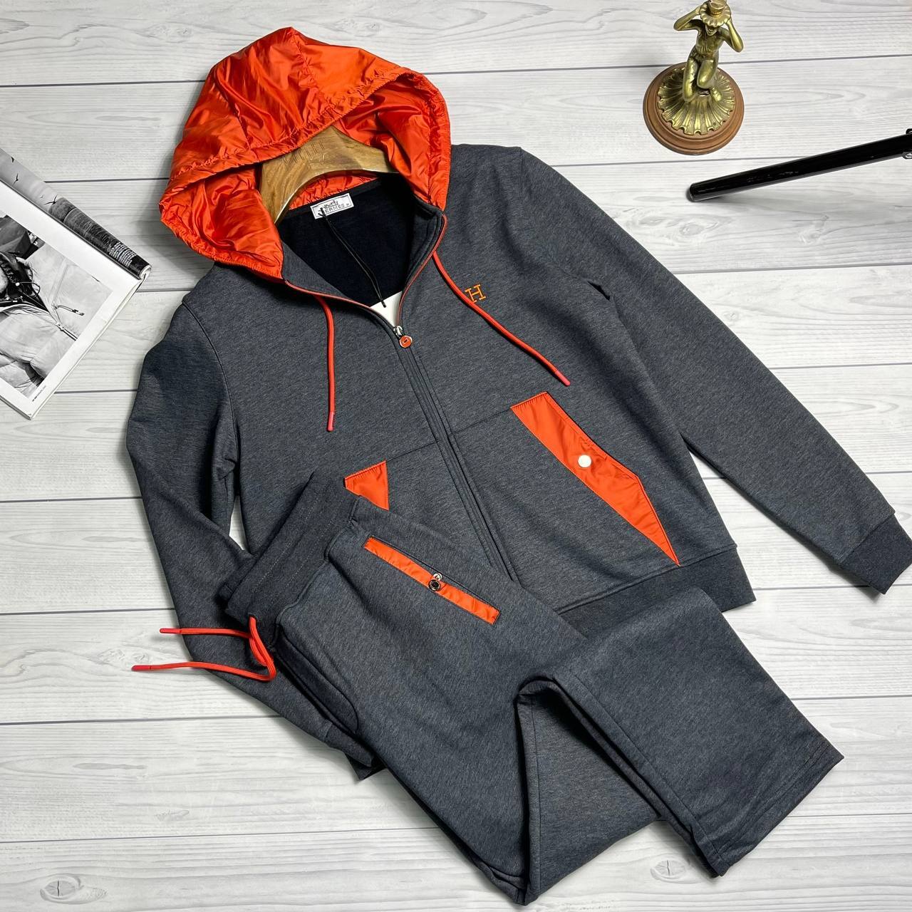 Когда речь идет о спортивной одежде, многие ищут не только функциональность, но и стиль. Спортивный костюм на флисе с капюшоном от Hermes отвечает всем требованиям модников, желающих выглядеть безупречно в любых условиях. Он идеально подходит как для активного отдыха, так и для повседневной носки. Благодаря элегантному силуэту и современному дизайну, этот костюм легко комбинируется с различной обувью и аксессуарами, позволяя создавать разнообразные образы — от спортивного до более расслабленного стиля.