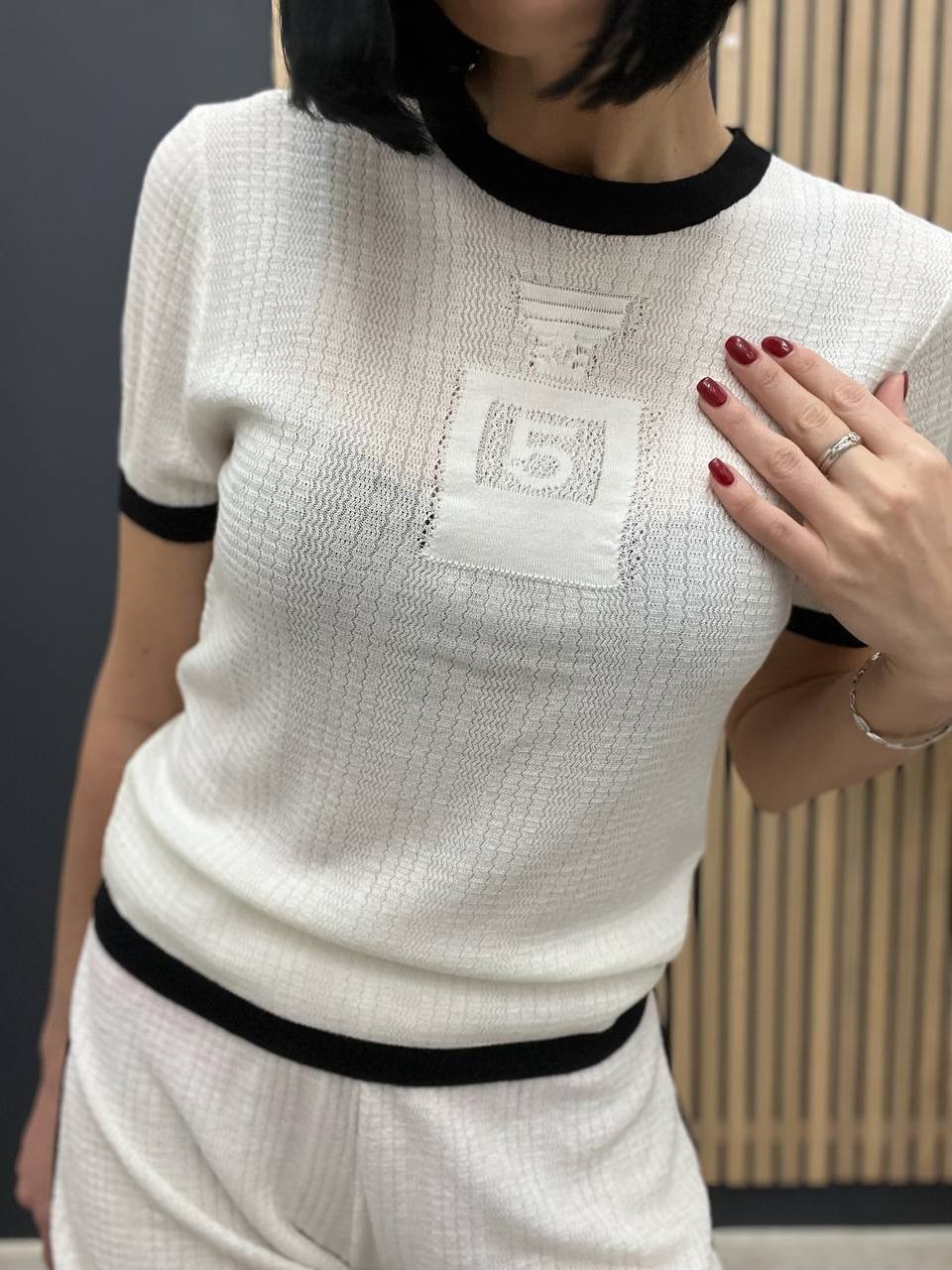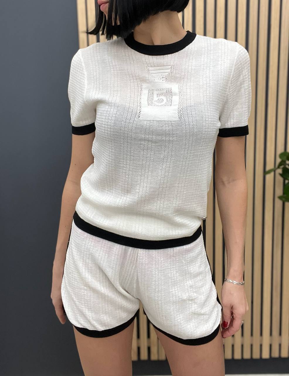 Костюм Chanel BP-47577 не только прекрасно сидит, но и легко комбинируется с другими элементами вашего гардероба. Вы можете смело сочетать его с различными блузами, топами и аксессуарами, создавая уникальные образы на каждый день. Этот предмет одежды станет основой для множества стильных луков, которые подчеркнут вашу индивидуальность и вкус. Важно отметить, что Chanel всегда следует последним модным трендам, поэтому вы можете быть уверены, что ваш выбор будет актуален и современен.