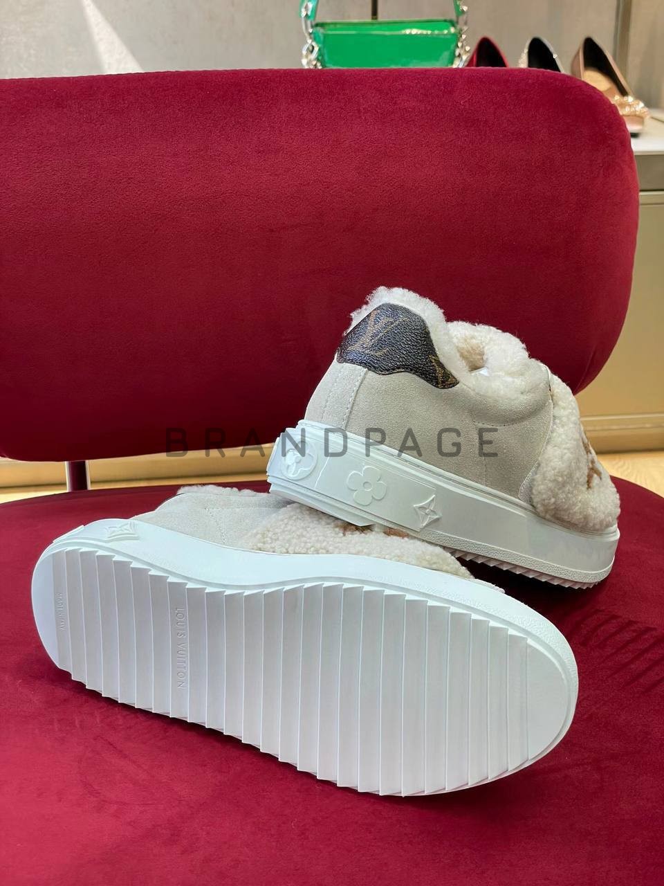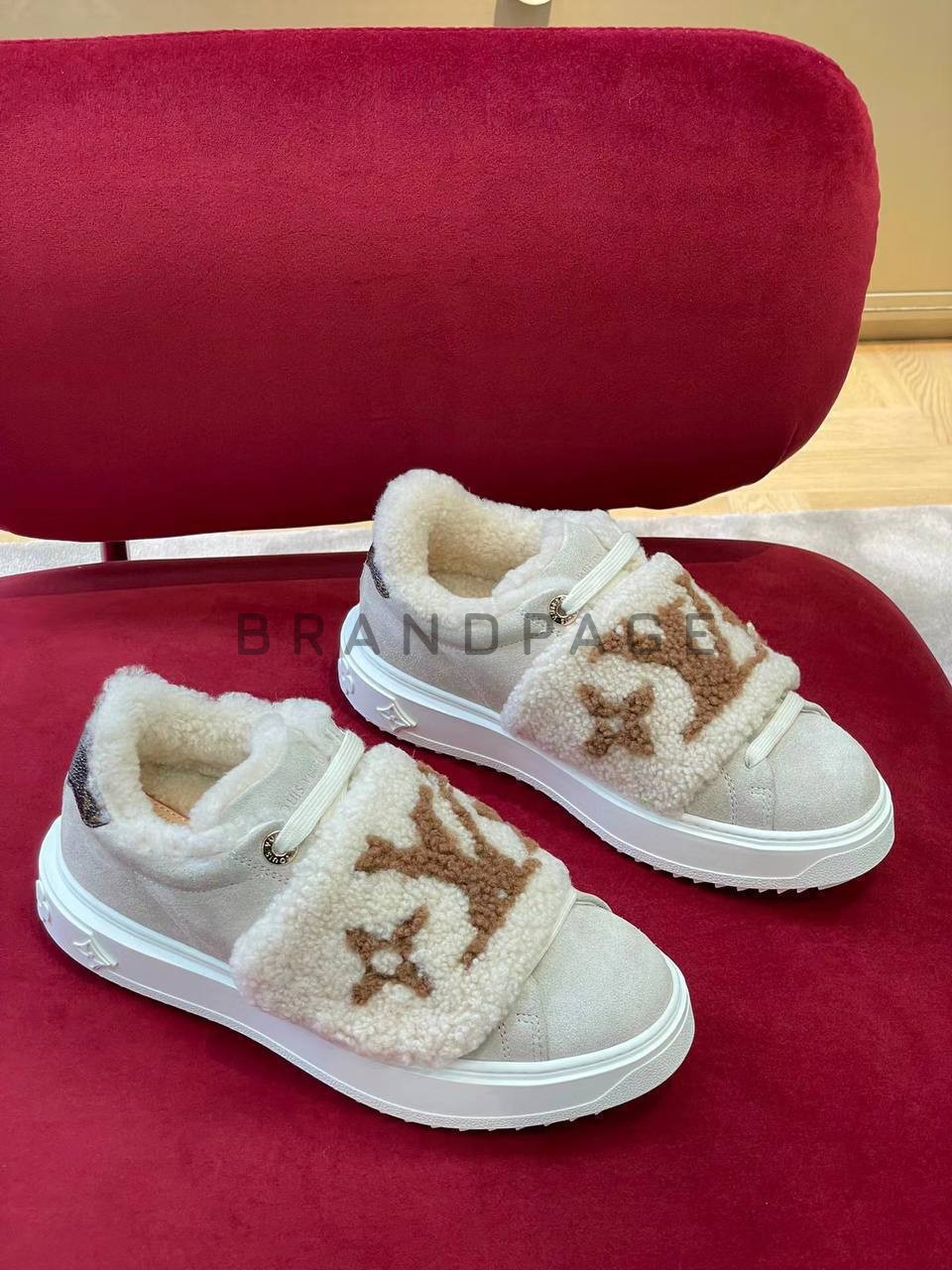 Эта модель объединяет в себе элегантность и практичность, присущие бренду Louis Vuitton. Бело-бежевые оттенки подчеркивают утонченность, а сочетание замши и текстиля обеспечивает легкость и долговечность. Внутренний мех дарит уют и тепло в прохладные дни, создавая ощущение комфорта без ущерба стилю.