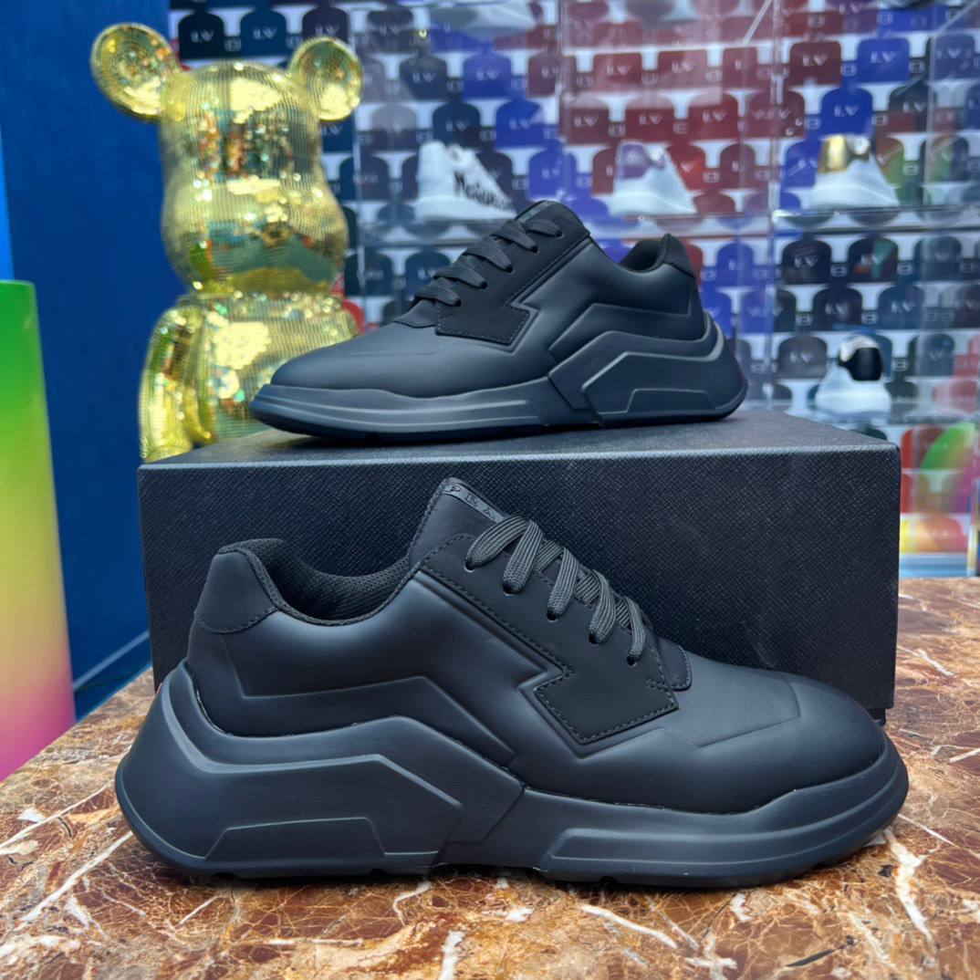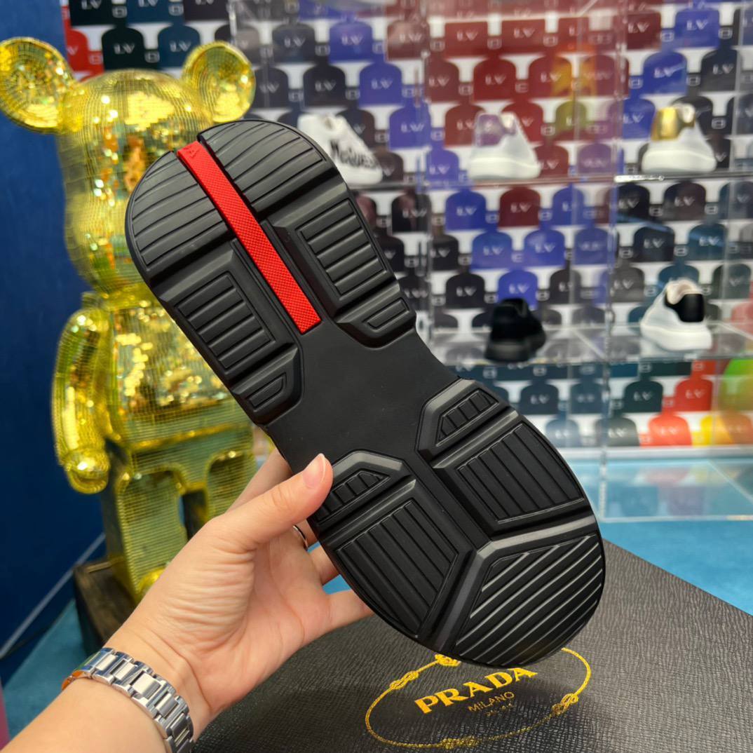 Каждый шаг в этих кроссовках — это шаг к новым вершинам стиля. Их элегантный черный цвет придаёт образу строгость и одновременно создает эффектный контраст с любыми нарядами. Независимо от того, выбираете ли вы классические джинсы или стильные брюки, кроссовки Prada станут ярким акцентом вашего образа. Они идеально дополнят как деловой, так и кэжуал стиль, позволяя вам оставаться в тренде в любой ситуации.