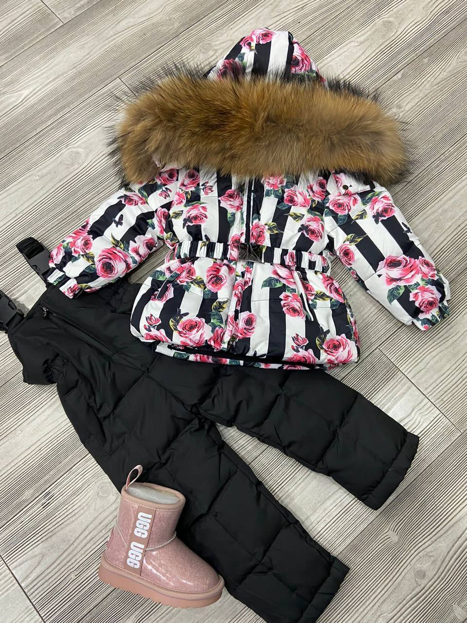 Куртка, входящая в комплект, выполнена из легкого, но при этом теплого материала, что делает ее идеальной для переменчивых погодных условий. Стильный крой и модные детали, такие как оригинальные молнии и декоративные элементы, делают эту куртку не только практичной, но и невероятно привлекательной. Комбинезон, в свою очередь, отличается удобством и свободой движений, что позволяет детям активно играть и заниматься любимыми делами, не ощущая дискомфорта. Этот комплект станет настоящим спасением для родителей, которые хотят, чтобы их дочери выглядели стильно, не жертвуя комфортом.