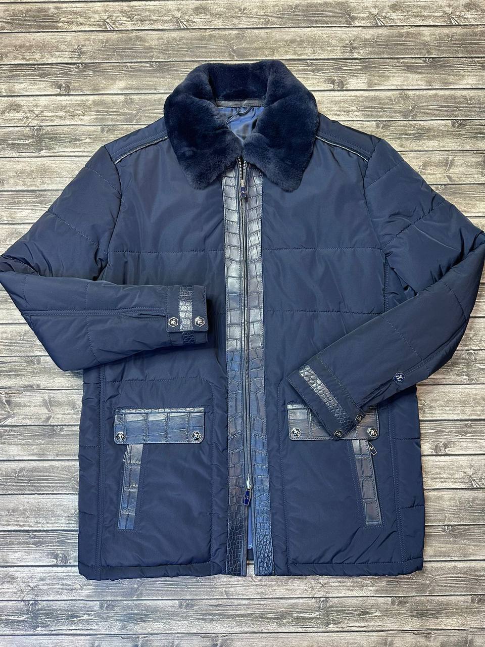 Стильная куртка с кожаными вставками крокодила от Angelo Galasso