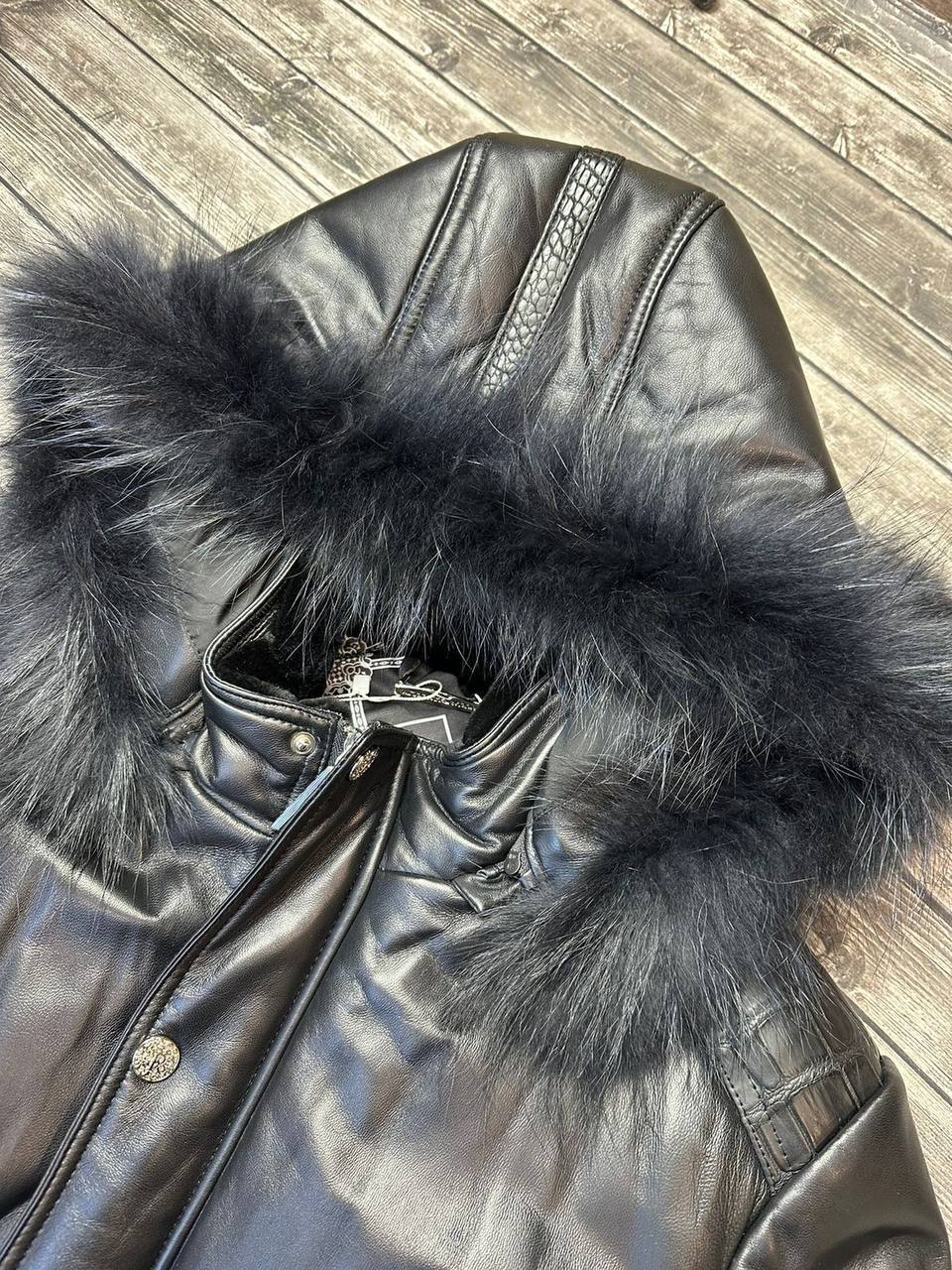 Удлинённая кожаная куртка со вставками из кожи крокодила от Stefano Ricci