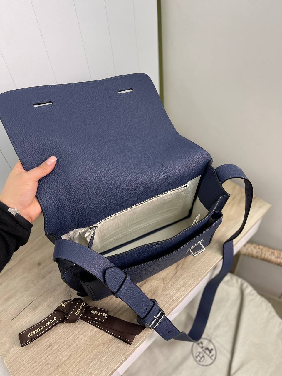Кроме того, мессенджер от Hermes – это не только стиль, но и практичность. Внутреннее пространство сумки позволяет удобно размещать все необходимые вещи, будь то документы, гаджеты или личные мелочи. Благодаря продуманной конструкции, аксессуар обеспечивает легкий доступ ко всем предметам, что особенно важно в динамичном ритме жизни. Модель сочетает в себе элегантность и функциональность, что делает ее идеальным выбором для мужчин, стремящихся к совершенству в каждой детали своего образа.