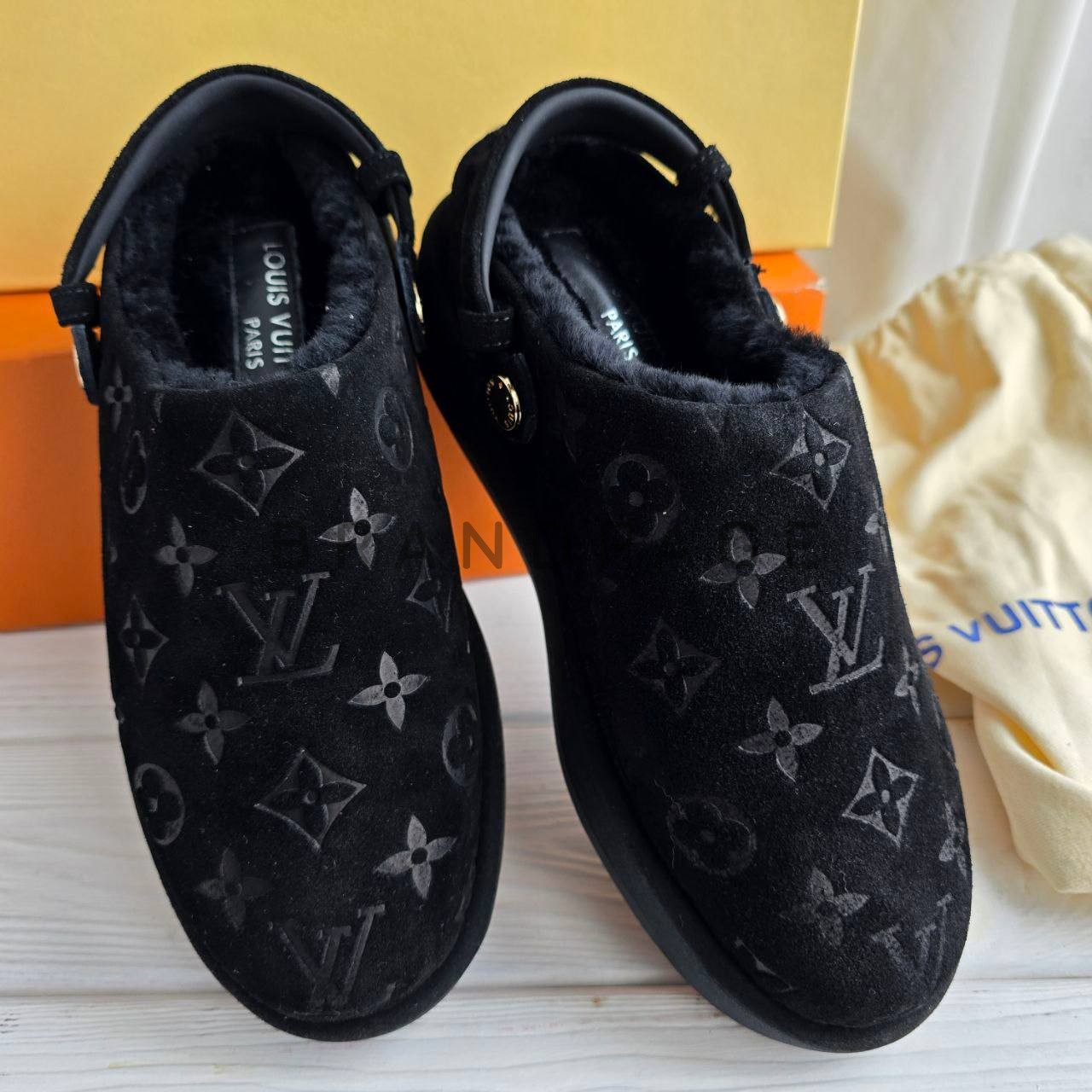 При создании этих мюлей использован высококачественный текстиль, который обеспечивает долговечность и удобство в носке. Меховая отделка придаёт изделию роскошный акцент, делая его незаменимым для тех, кто ценит эксклюзивность и комфорт. Цветовая гамма тщательно подобрана для максимальной гармонии с модными тенденциями, а бренд Louis Vuitton гарантирует превосходный уровень исполнения и стиль.