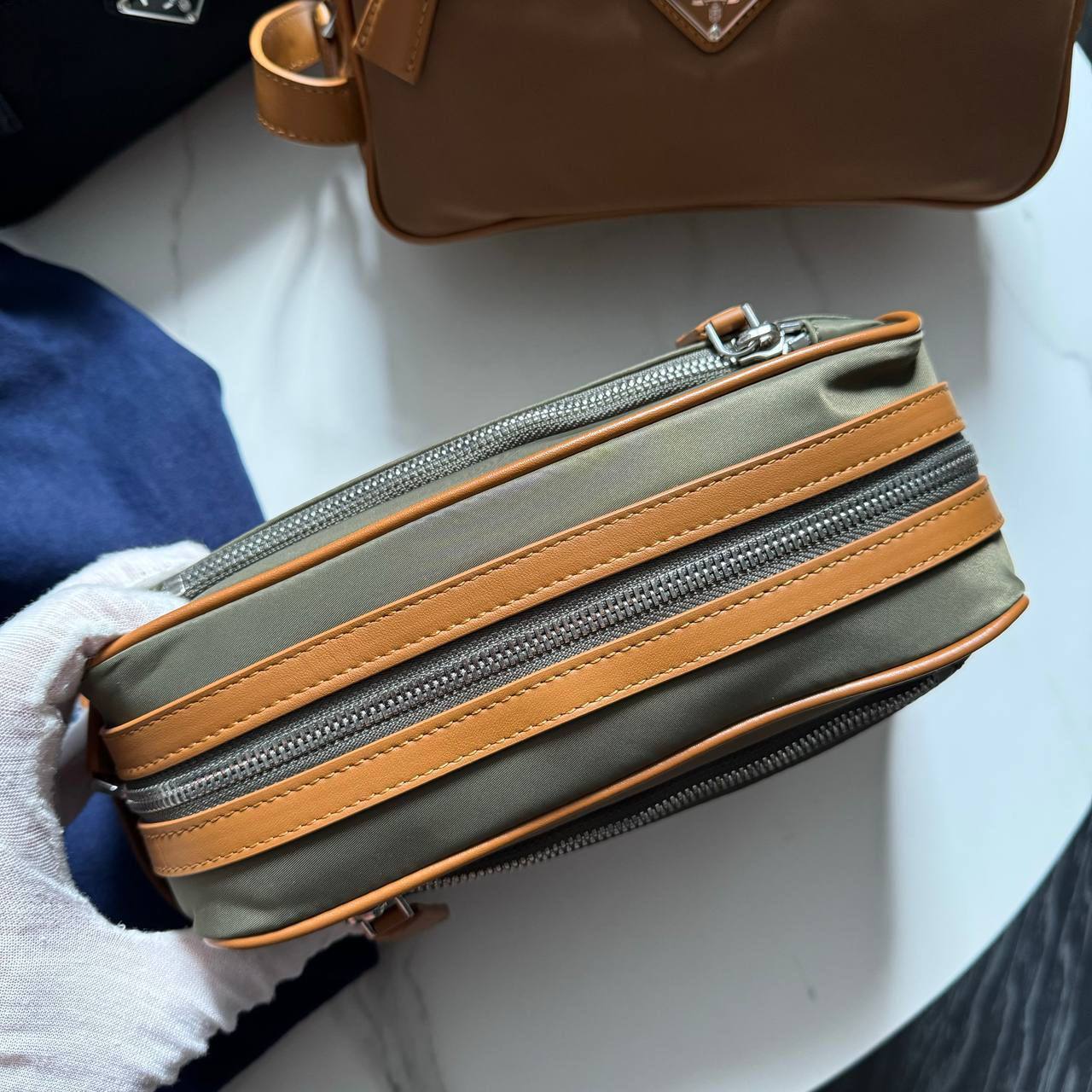 С несессером от Prada вы сможете легко организовать свои вещи и всегда иметь под рукой все необходимое. Его компактные размеры позволяют удобно помещать его в любую сумку, а стильный внешний вид делает его настоящим акцентом в вашем образе. Этот аксессуар идеально подходит для деловых поездок, путешествий или просто для повседневного использования. Не упустите возможность добавить в свою коллекцию этот уникальный элемент, который станет верным спутником в мире моды и стиля.