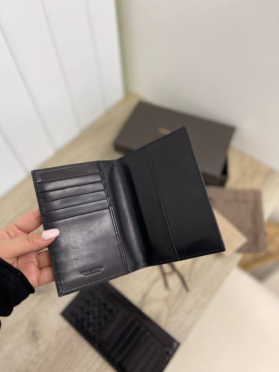 Элегантная черная обложка на паспорт от Bottega Veneta для мужчин