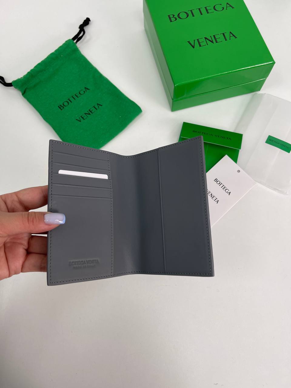 Обложка Bottega Veneta — это не просто аксессуар, а отражение философии бренда, который акцентирует внимание на деталях и качестве. Каждый элемент продуман до мелочей: от текстуры кожи до аккуратных швов. Она станет верным спутником для тех, кто не просто следует моде, а создает свой собственный стиль. Благодаря своему лаконичному, но в то же время выразительному дизайну, обложка легко вписывается в любой гардероб, подчеркивая статус и уверенность своего владельца.