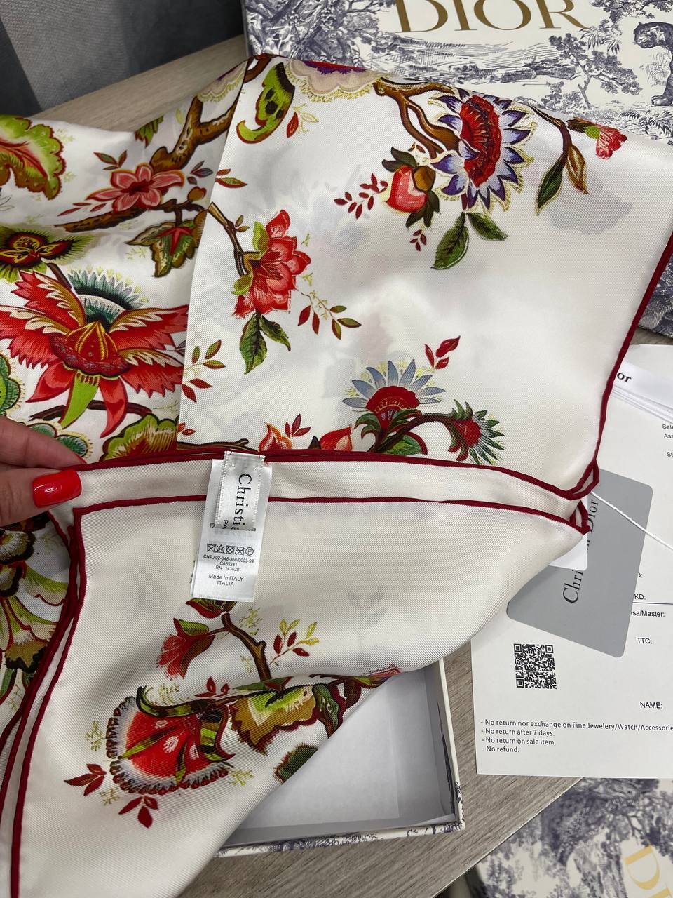 Платок Christian Dior — это не просто аксессуар, а символ статуса и изысканности. Его уникальный дизайн и яркая палитра цветов позволят вам выделиться из толпы, придавая вашему стилю индивидуальность. Будь то вечерний выход или повседневная прогулка, этот платок станет вашим верным спутником, добавляя в ваш образ шарм и элегантность. Сочетание традиционных мотивов и современных трендов делает его универсальным, что позволяет носить его в различных стилях — от классического до кэжуал.