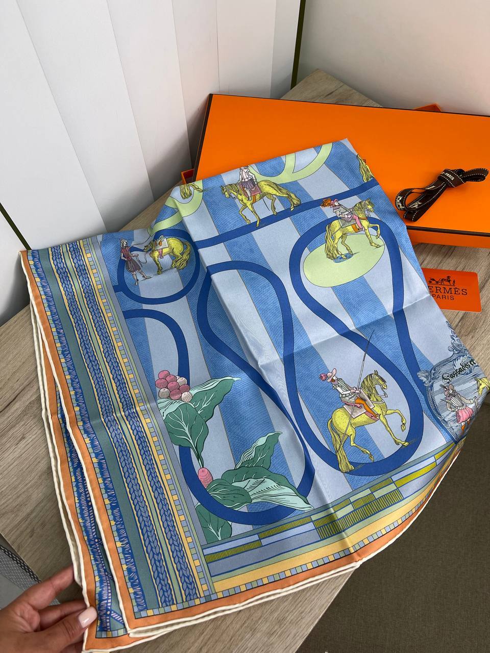 Каждая модница знает, что аксессуары способны преобразить любой образ, добавив ему изысканности и утонченности. Люксовый платок от знаменитого бренда Hermes становится не просто дополнением, а настоящим акцентом в вашем гардеробе. Этот уникальный аксессуар, созданный с любовью и вниманием к деталям, отражает высокие стандарты качества и стиля, которые всегда ассоциируются с именем Hermes. Платок, выполненный из нежного материала, обладает удивительной легкостью и мягкостью, что делает его идеальным для носки в любое время года.