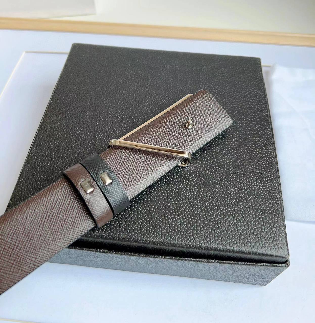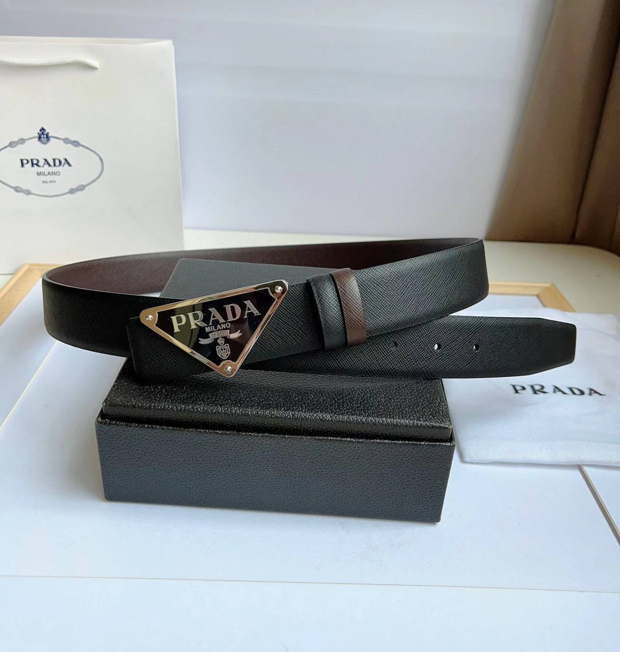 Люксовый ремень двухсторонний Prada BP-31724 для стильных мужчин