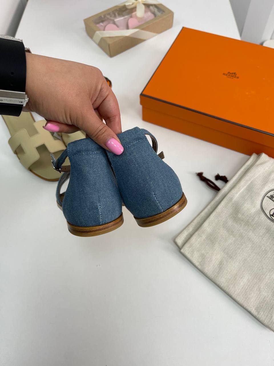 Изготавливаясь из высококачественных материалов, сандалии Hermes BP-30046 обеспечивают невероятное удобство при носке. Мягкие и дышащие текстуры позволяют ногам чувствовать себя комфортно даже в самые жаркие дни. Этот аксессуар станет отличным выбором как для повседневных прогулок, так и для более формальных мероприятий, где важен каждый элемент вашего образа. Сандалии идеально дополнят любой наряд, будь то легкое летнее платье или стильные брюки.