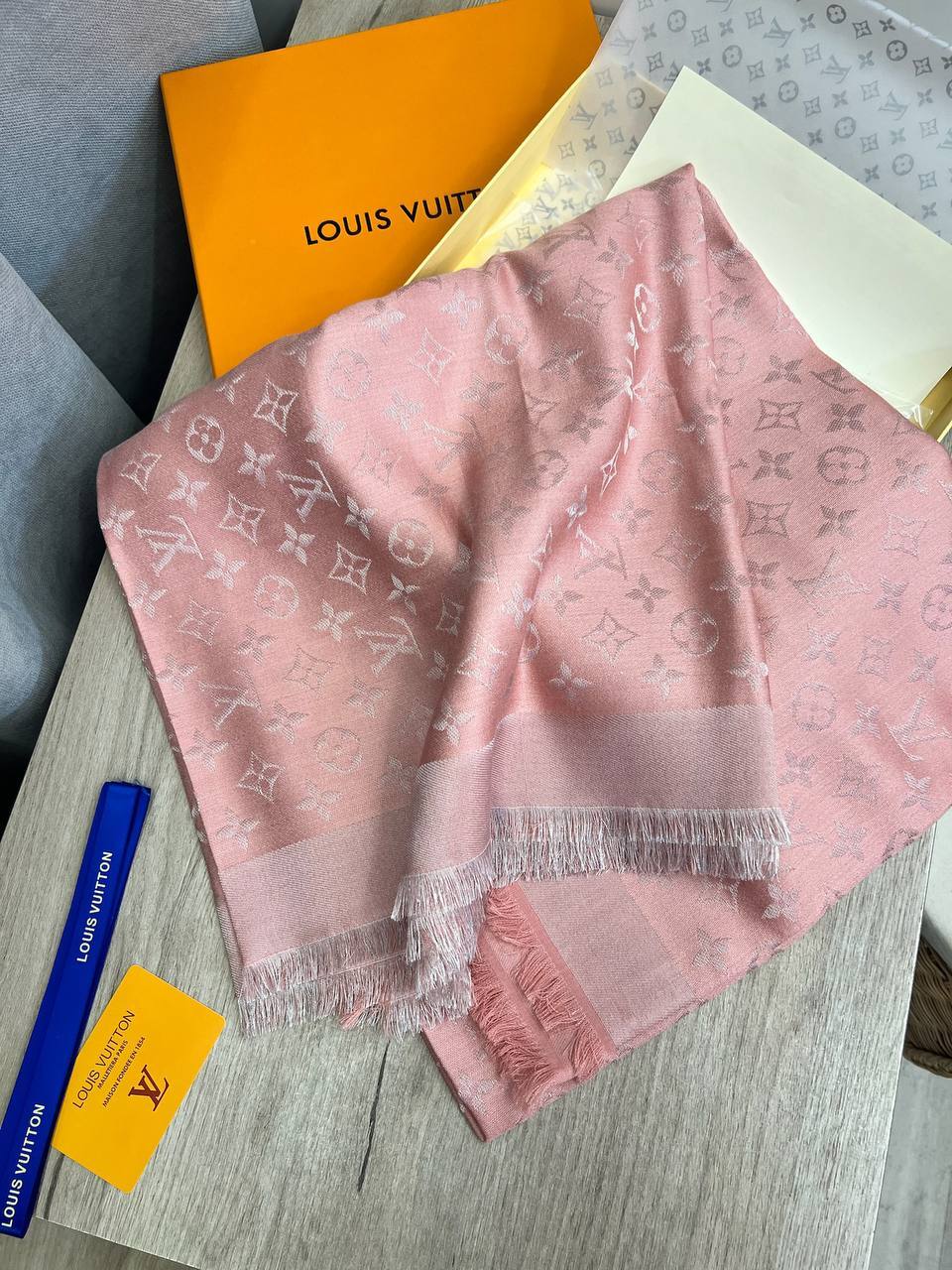 Каждая шаль Louis Vuitton — это не просто аксессуар, а истинное произведение искусства, которое привлекает внимание своей элегантностью и утонченностью. Вдохновленная классическими мотивами, она сочетает в себе традиции бренда и современные тренды, создавая уникальный стиль. Носить ее можно как на плечах, так и как головной убор, что делает ее универсальным предметом для создания различных образов. Эстетика и функциональность — вот что отличает этот аксессуар от других.