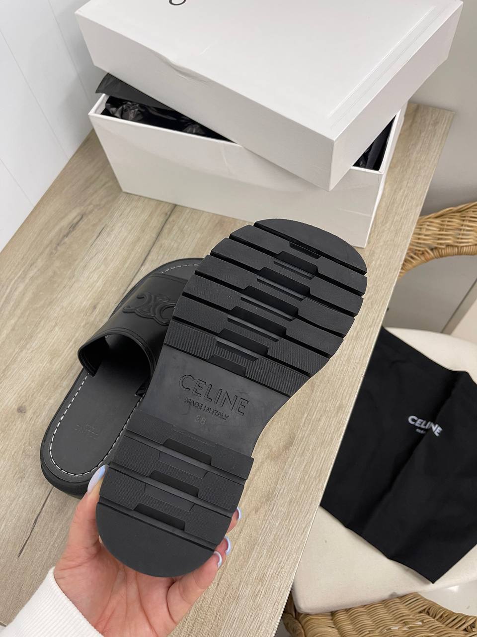 Таким образом, шлепанцы Celine BP-32736 — это не просто обувь, а истинное отражение вашего стиля и статуса. Они идеально подойдут для тех, кто не боится выделяться из толпы и стремится к высокому качеству и уникальности в каждом элементе своего образа. Не упустите возможность добавить этот шикарный аксессуар в свою коллекцию и наслаждайтесь каждым шагом в мире моды.