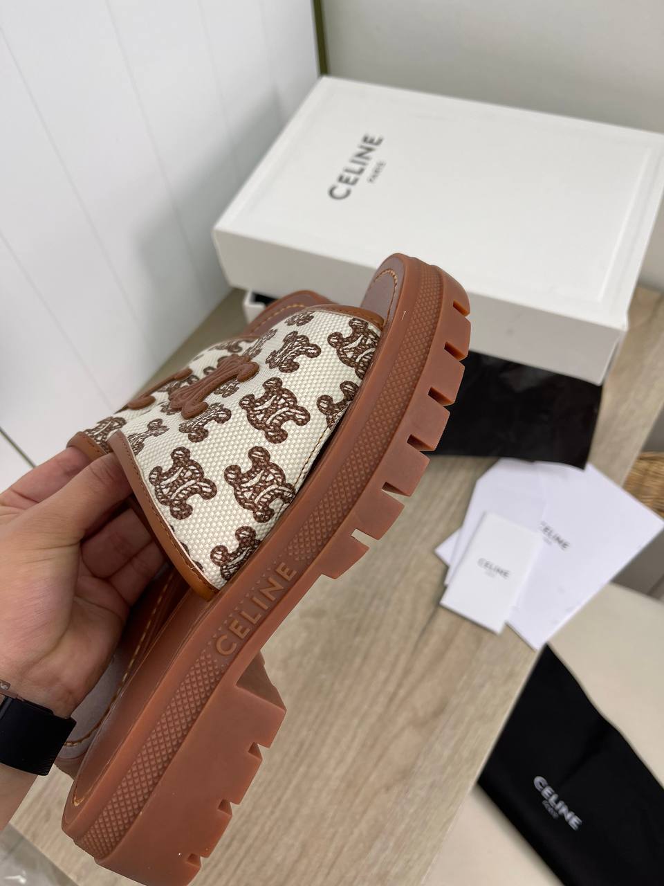 Эти шлепанцы от Celine идеально подходят для тех, кто ценит стиль и качество. Они могут стать отличным дополнением к вашему гардеробу, позволяя вам легко переходить от повседневных дел к вечерним встречам. Важным аспектом является универсальность шлепанцев: их можно носить как на пляже, так и в городских условиях. Удобство и стиль в одном флаконе — именно это делает их незаменимыми в летнем сезоне.