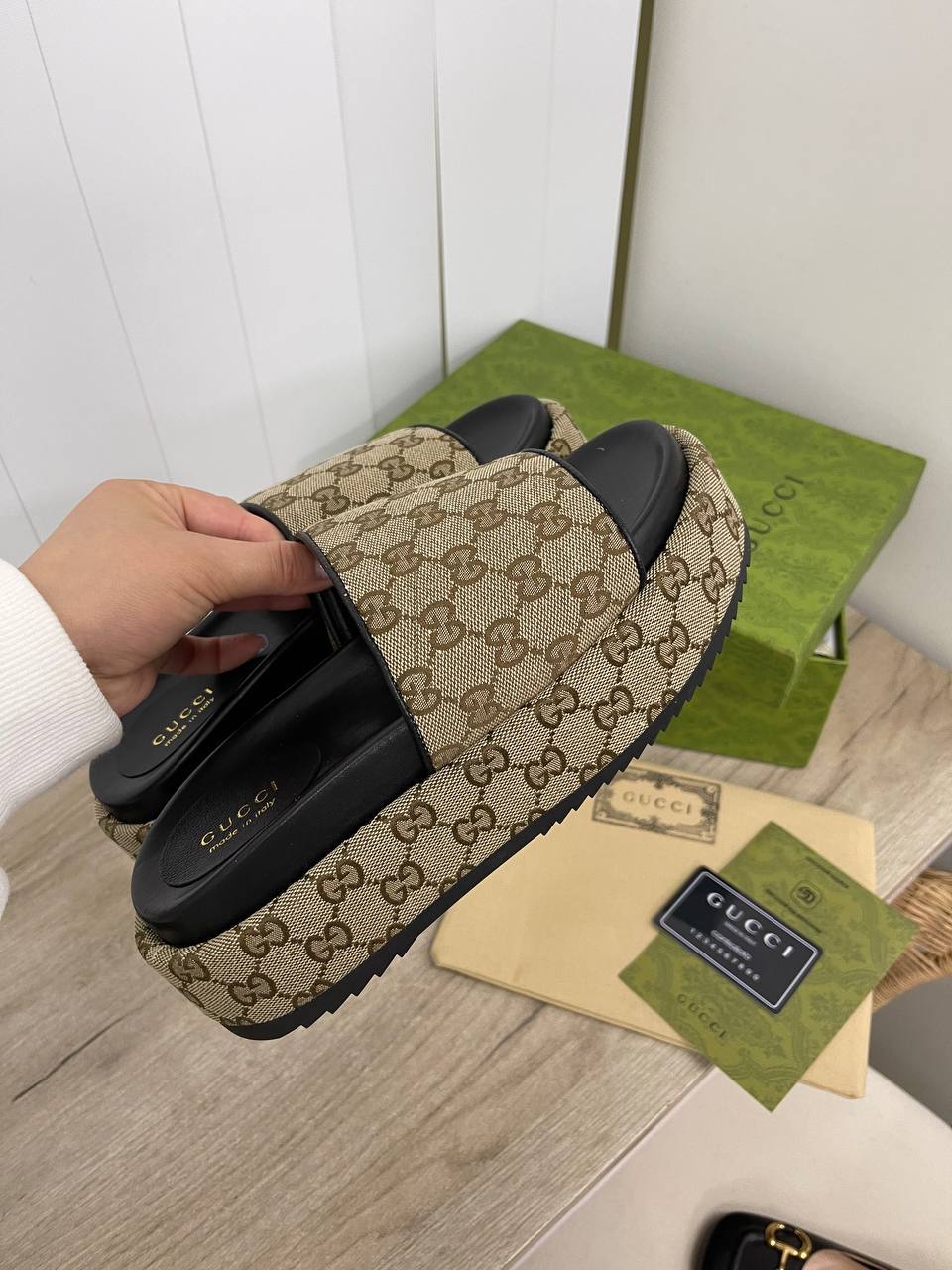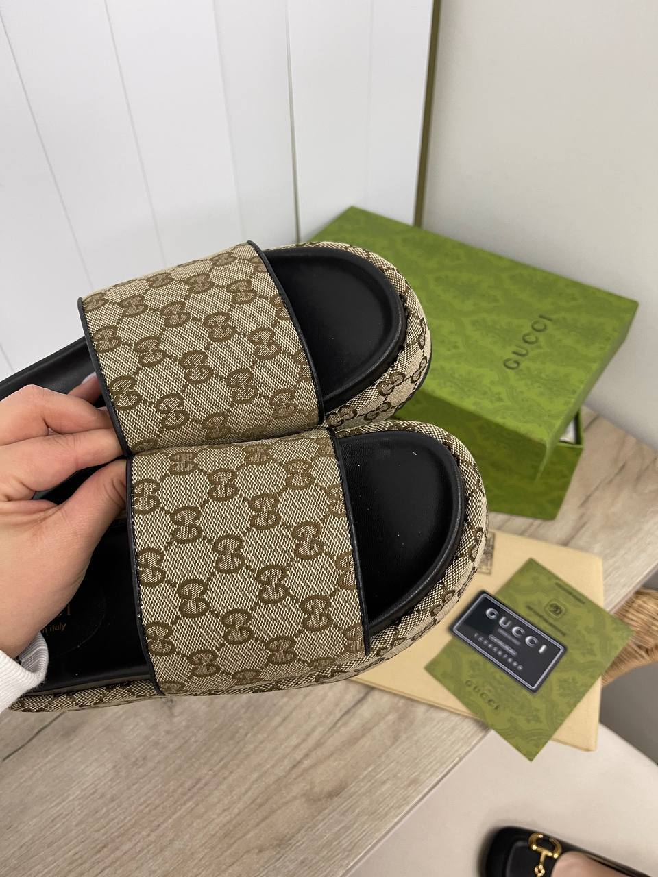 Кроме того, шлепанцы Gucci BP-32812 идеально подходят для путешествий. Легкие и удобные, они станут вашим надежным спутником на пляже, в отеле или во время прогулок по городу. Их можно легко упаковать в чемодан, не беспокоясь о том, что они займут много места. Каждый раз, когда вы будете надевать эти шлепанцы, вы будете чувствовать, что находитесь в окружении стиля и роскоши. Они станут не просто обувью, а настоящим атрибутом вашего образа жизни, подчеркивая ваши высокие стандарты и безупречный вкус.