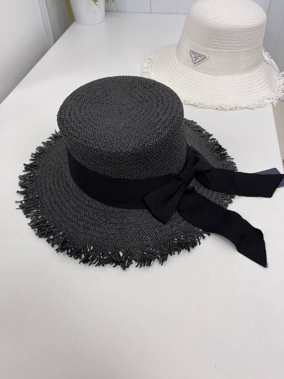 Каждая деталь шляпы продумана до мелочей, что подчеркивает высокую степень мастерства, присущую Prada. Элегантная отделка и изысканный силуэт делают этот аксессуар поистине уникальным. Вы сможете легко комбинировать шляпу с различными стилями одежды — от романтических платьев до строгих костюмов. Этот предмет гардероба станет вашим верным спутником в любых ситуациях, будь то прогулка по городу или участие в светском мероприятии. Шляпа не только защитит от солнечных лучей, но и добавит вашему образу шарма и загадки.