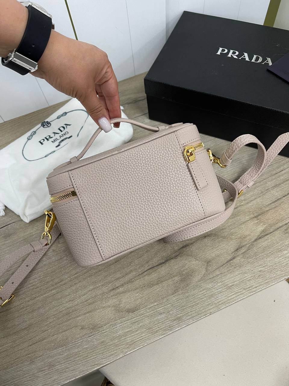 Каждая деталь этой сумки продумана до мелочей. Элегантные линии и лаконичный дизайн делают ее универсальной: ее можно носить как на торжественные мероприятия, так и в повседневной жизни. Женская сумка 19 см Prada премиум BP-33918 станет верной спутницей для деловых встреч, романтических свиданий или прогулок по городу. Благодаря своему размеру, она достаточно компактна, чтобы не мешать, и в то же время вмещает все необходимые вещи, что делает ее идеальным выбором для современных женщин, стремящихся к комфорту и стилю.