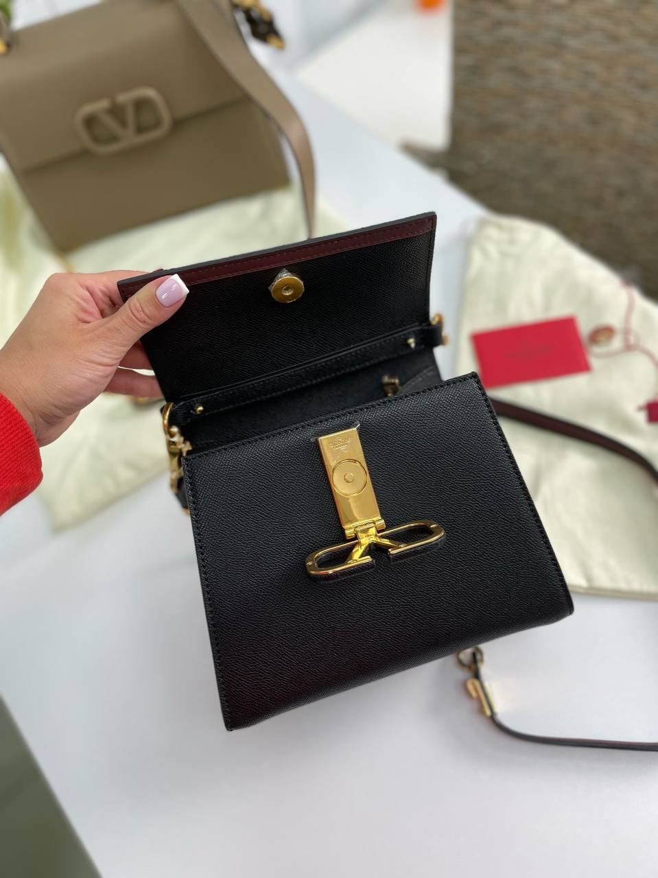 Каждая модница знает, что аксессуары могут кардинально изменить облик. Сумка Valentino Garavani — это не просто предмет, а настоящая находка для тех, кто стремится к самовыражению через моду. Благодаря своей компактной форме и продуманному дизайну, она легко вмещает все необходимые вещи, не теряя при этом своей изящности. Элегантные детали, такие как логотип бренда, добавляют изюминку и делают сумку поистине уникальной. С ней вы будете чувствовать себя уверенно в любой ситуации.