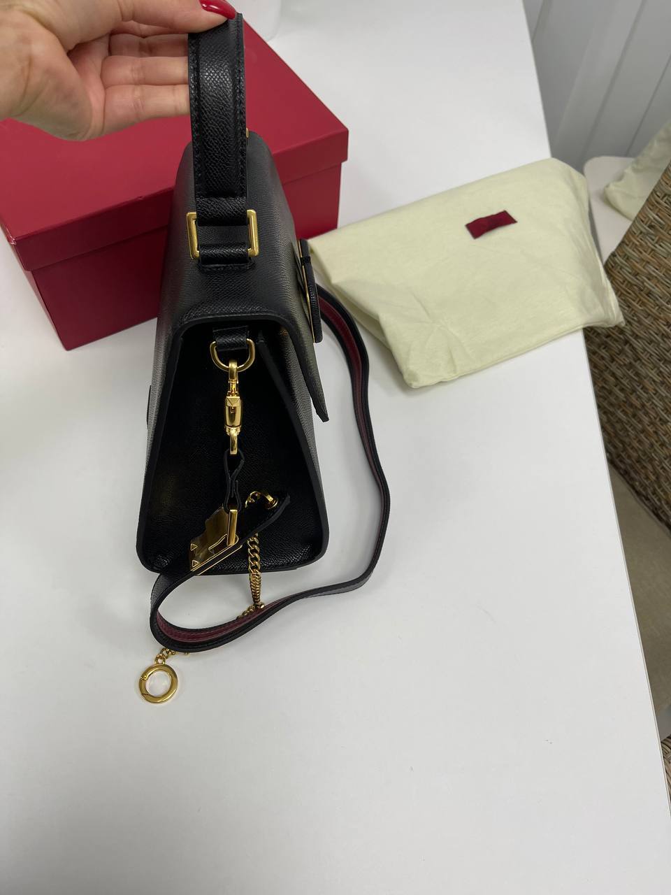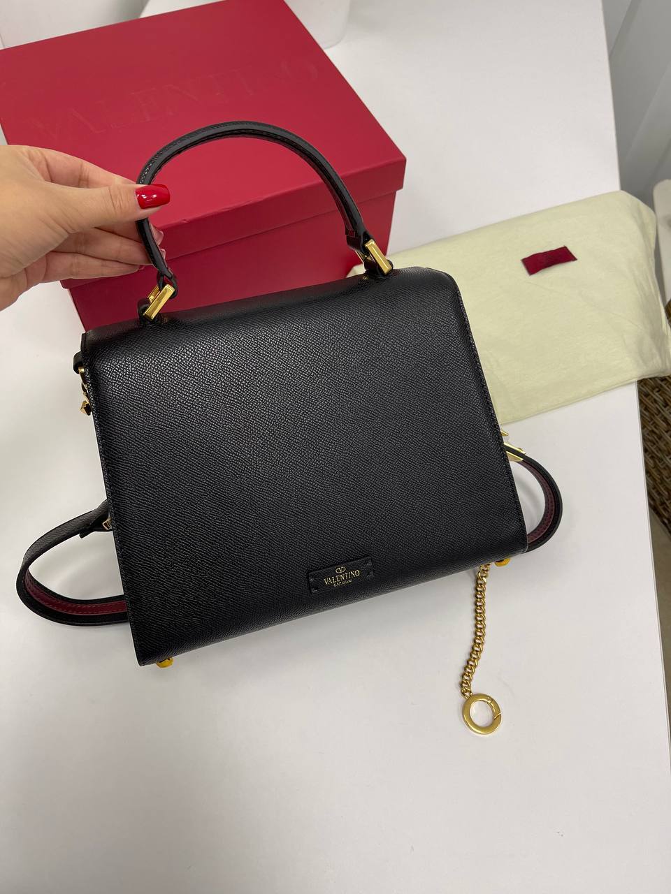 Каждая деталь этой сумки продумана до мелочей. Использование первоклассной кожи гарантирует долговечность и износостойкость, а также придает изделию шикарный вид. Стильная фурнитура и аккуратные швы подчеркивают высокий уровень исполнения, который является визитной карточкой бренда Valentino. Эта сумка станет идеальным аксессуаром для модниц, которые ценят не только внешнюю привлекательность, но и функциональность. Вместительная, но компактная, она легко вмещает все необходимые вещи, оставаясь при этом стильным акцентом вашего образа.