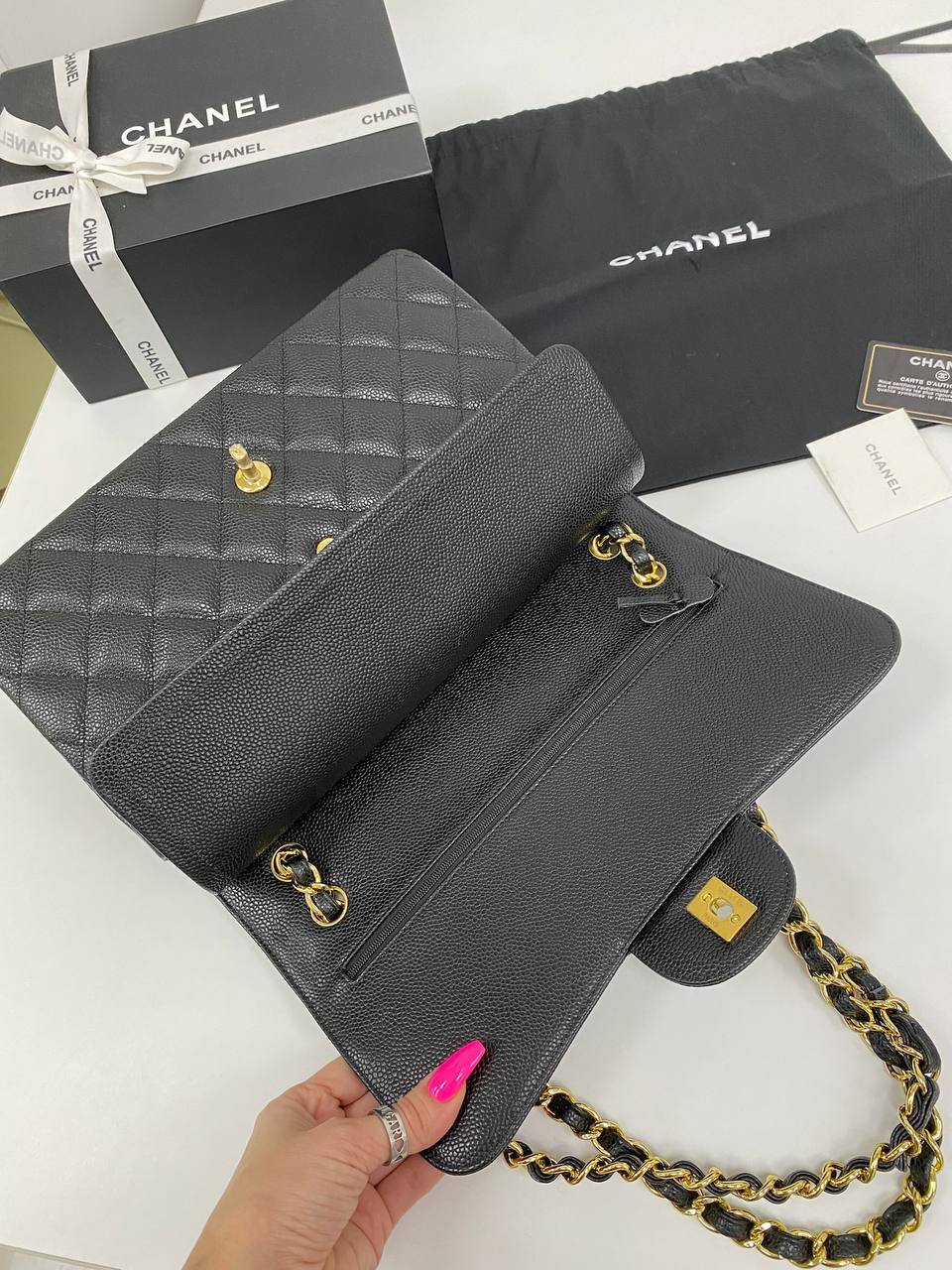 Внутреннее пространство сумки продумано до мелочей, позволяя организовать все необходимые вещи. Сочетание функциональности и эстетики делает её идеальным выбором для современных женщин, которые ведут активный образ жизни. Стильный дизайн и классические линии делают её универсальной, подходящей как для деловых встреч, так и для романтических свиданий. Каждая деталь, от застежки до подкладки, выполнена с безупречным вкусом, что отражает философию бренда Chanel — создавать вещи, которые будут радовать и вдохновлять.