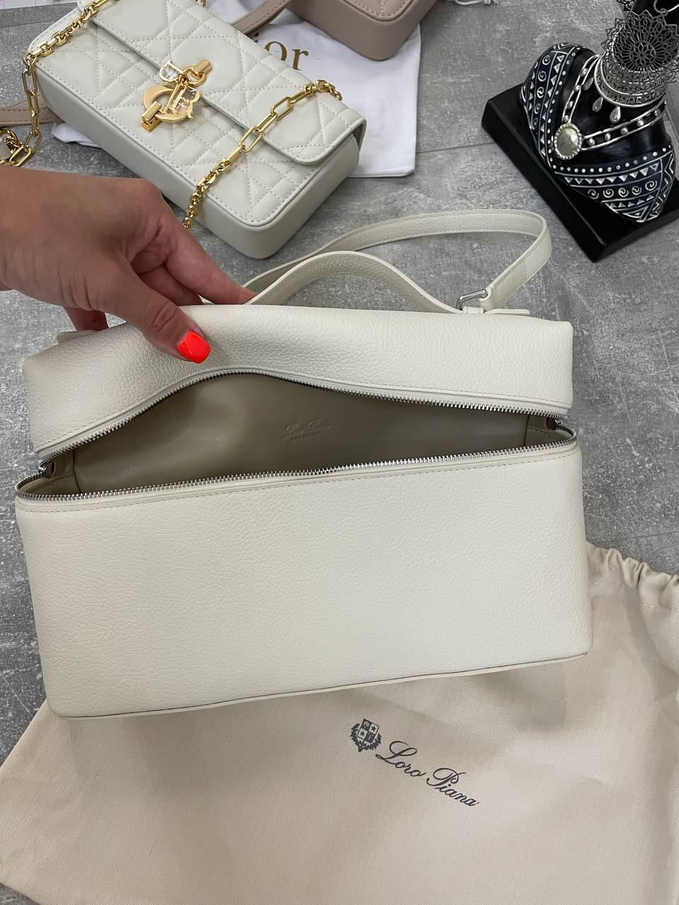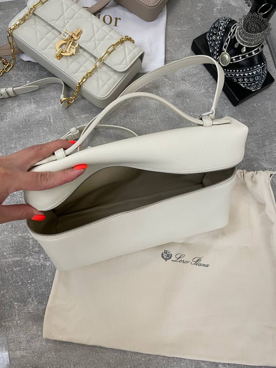 Каждая деталь этой сумки продумана до мелочей. Внутреннее пространство организовано так, чтобы обеспечить максимальный комфорт и удобство в использовании. Множество карманов и отделений позволяют легко разместить все необходимые вещи, от косметики до документов. Женская сумка премиум от Loro Piana — это не просто аксессуар, это выражение вашего стиля и уверенности. Она станет верным спутником в любых начинаниях, подчеркивая вашу индивидуальность и статус.