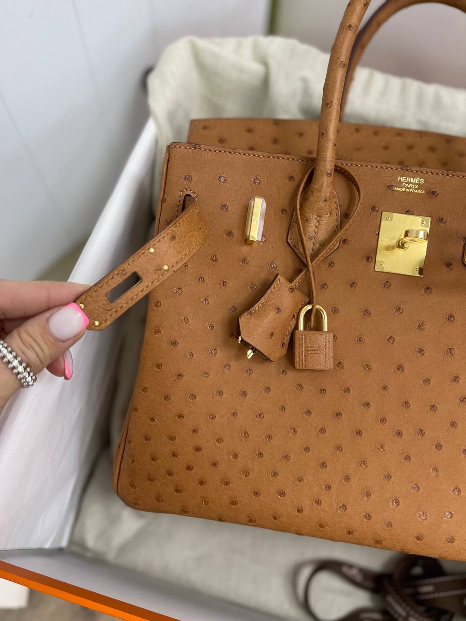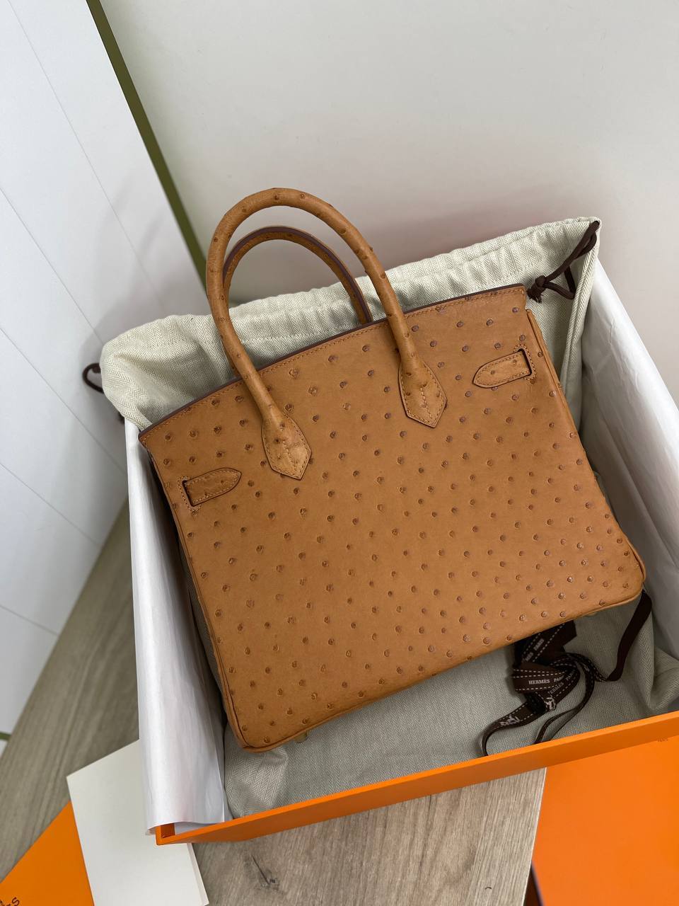Стильная и практичная, Birkin 30 cm Ostrich станет незаменимым спутником в повседневной жизни. Она идеально подходит как для деловых встреч, так и для вечерних выходов, добавляя вашему наряду нотку роскоши. Благодаря своим компактным размерам, сумка легко вмещает все необходимые вещи, такие как косметика, телефон и кошелёк, оставаясь при этом лёгкой и удобной в носке. Каждая женщина, обладая такой сумкой, чувствует себя уверенной и стильной, что делает её не просто аксессуаром, а настоящим произведением искусства.