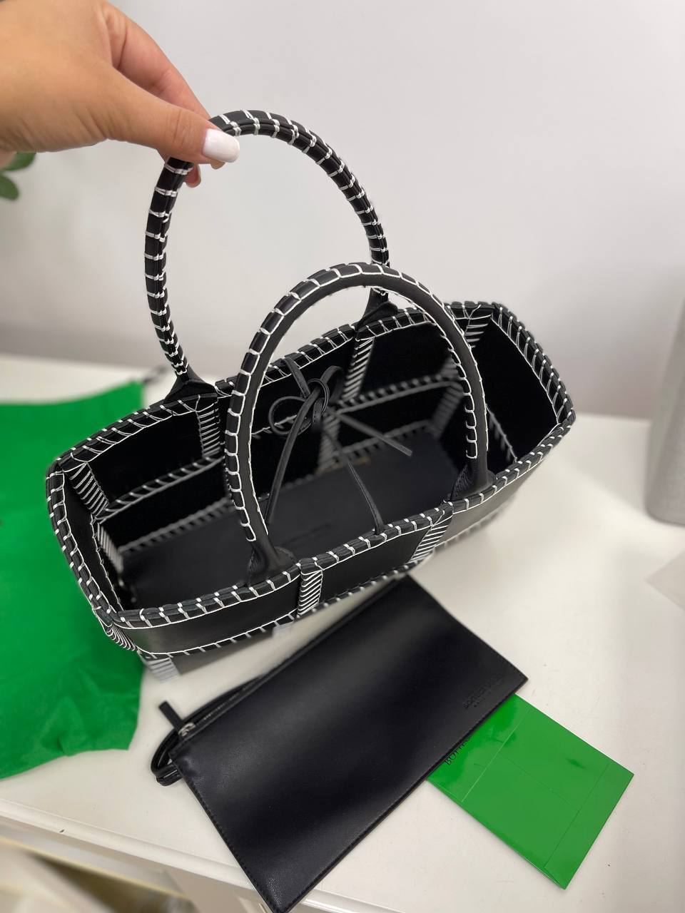 Сумка станет идеальным спутником как для деловых встреч, так и для вечерних выходов. Ее универсальный дизайн позволяет сочетать ее с различными образами, от классических до более смелых и креативных. Открывая ее, вы обнаружите продуманное внутреннее пространство, которое с легкостью вместит все необходимые вещи, не теряя при этом изящества. Bottega Veneta BP-19240 — это не просто аксессуар, это возможность подчеркнуть свою индивидуальность и стиль.