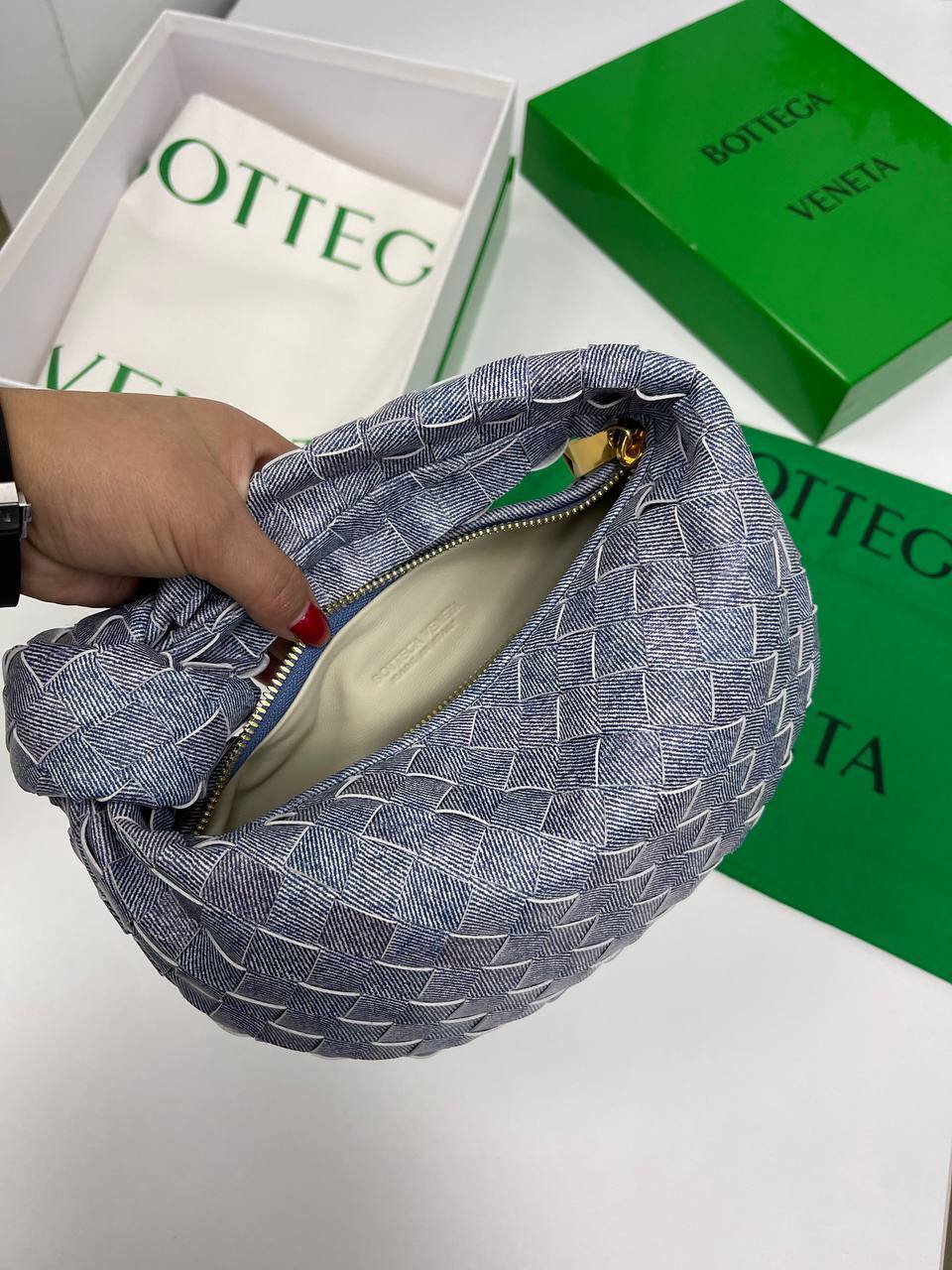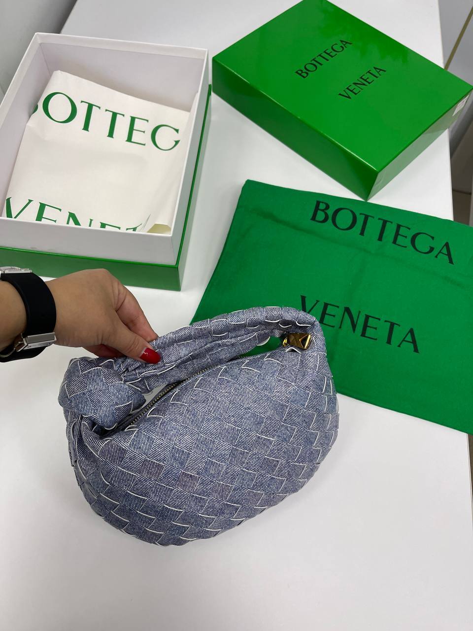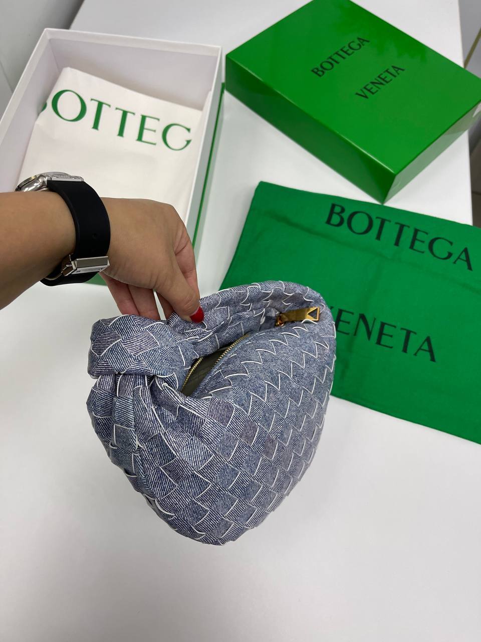 Каждая деталь сумки продумана до мелочей. Удобные ручки и регулируемый ремень позволяют носить её как через плечо, так и в руке, что обеспечивает максимальный комфорт в использовании. Эстетика Bottega Veneta проявляется не только в дизайне, но и в функциональности. Внутреннее пространство сумки организовано таким образом, что позволяет удобно разместить все необходимые вещи — от косметики до кошелька. Это делает изделие идеальным выбором для активных женщин, которые ценят стиль и удобство.