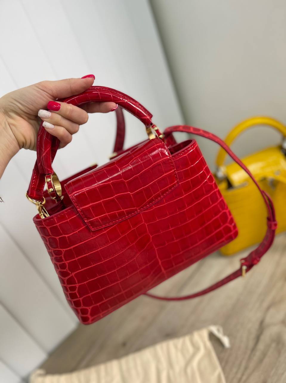 Сумка Capucines Louis Vuitton — это не просто аксессуар, это символ статуса и утонченного вкуса. Благодаря своему универсальному дизайну, она подходит как для женщин, так и для мужчин, которые ценят эстетику и качество. Элементы, такие как характерная ручка и съемный плечевой ремень, позволяют носить её по-разному, что делает её невероятно удобной и практичной. Вы можете выбрать, как именно хотите подчеркнуть свой стиль — носить её в руке или на плече, создавая тем самым уникальный образ, который будет говорить сам за себя.