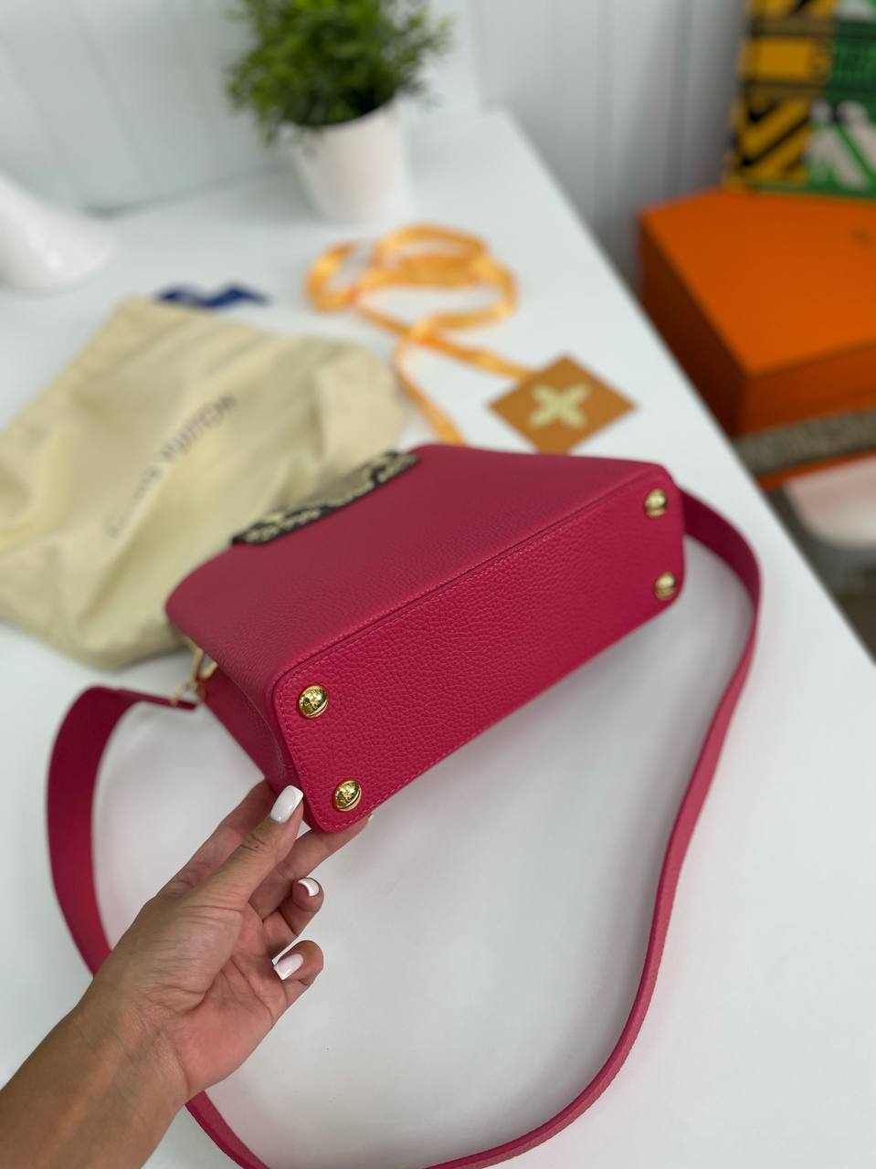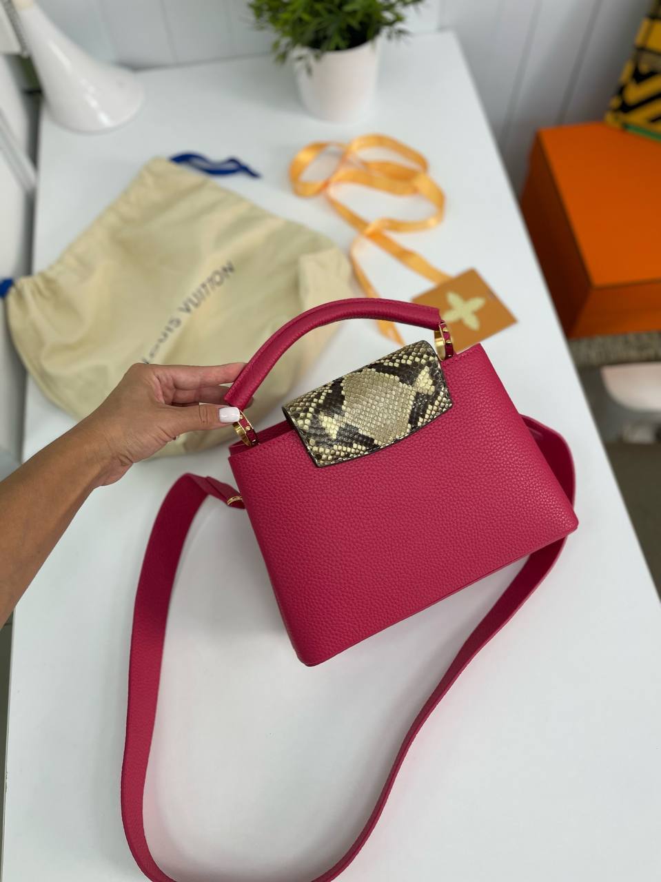 Louis Vuitton, как один из самых известных брендов в мире моды, продолжает удивлять своих поклонников новыми шедеврами. Сумка Capucines, выполненная из высококачественной кожи, отличается не только прочностью, но и удивительной мягкостью, обеспечивая комфорт в носке. Уникальный дизайн позволяет использовать её в различных стилях, будь то романтический вечер или деловая встреча. Внутреннее пространство продумано так, чтобы удовлетворить все потребности современной женщины: здесь достаточно места для необходимых вещей, а также предусмотрены карманы для мелочей.