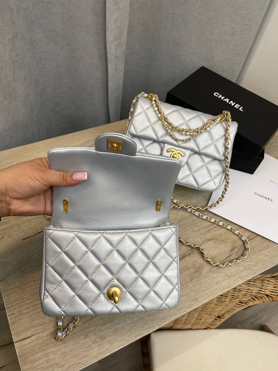 Каждая женщина, обладая такой сумкой, чувствует себя уверенно и привлекательно. Бренд Chanel всегда ассоциировался с качеством и стилем, и эта модель не стала исключением. Она подойдет для любого стиля — от классического до кэжуал, гармонично вписываясь в любой гардероб. Сумка будет прекрасно сочетаться как с вечерними нарядами, так и с повседневной одеждой, добавляя вашему образу изюминку и шарм. Этот аксессуар способен преобразить даже самый простой комплект, сделав его по-настоящему запоминающимся и стильным.
