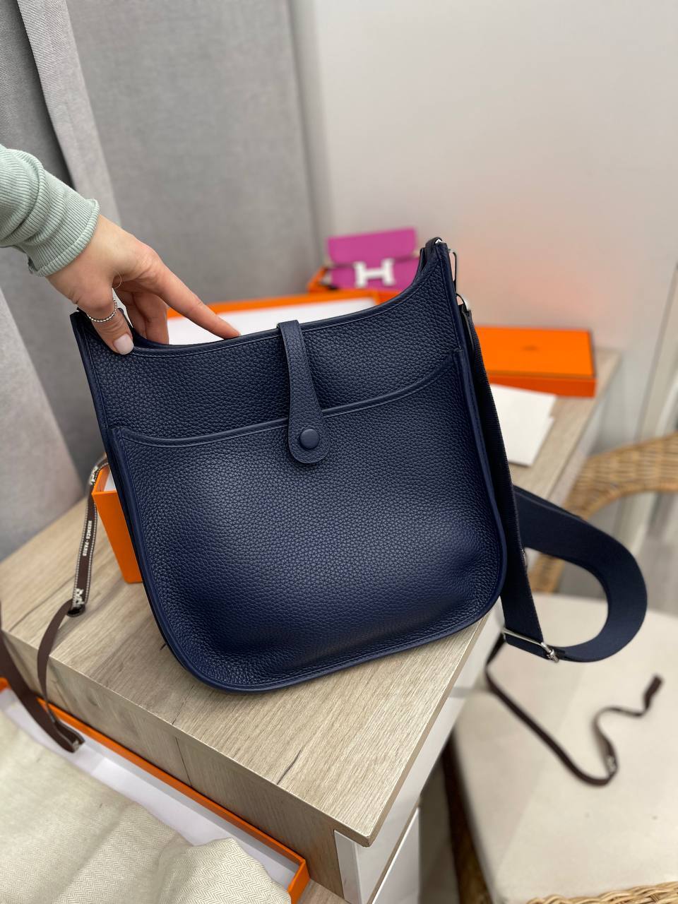 Таким образом, женская сумка премиум Evelyne от Hermes — это не просто аксессуар, а символ утонченного вкуса и стремления к совершенству. Каждая деталь этой сумки, каждая линия и текстура рассказывают историю о высоком искусстве моды и традициях, которые продолжают жить в каждом изделии бренда. Выбор Evelyne — это выбор в пользу качества, стиля и индивидуальности, который не оставит равнодушными ни модников, ни истинных ценителей люкс моды.