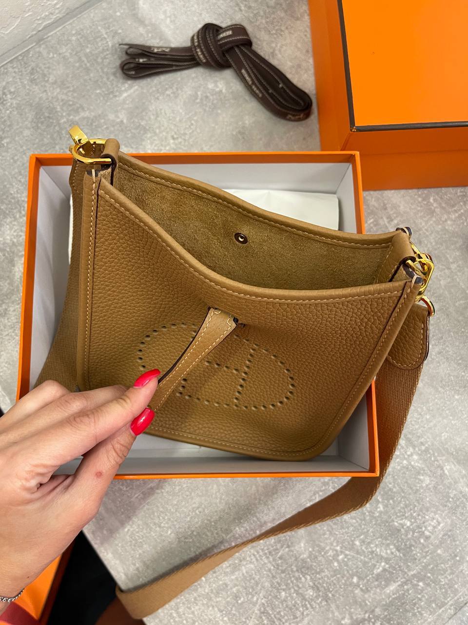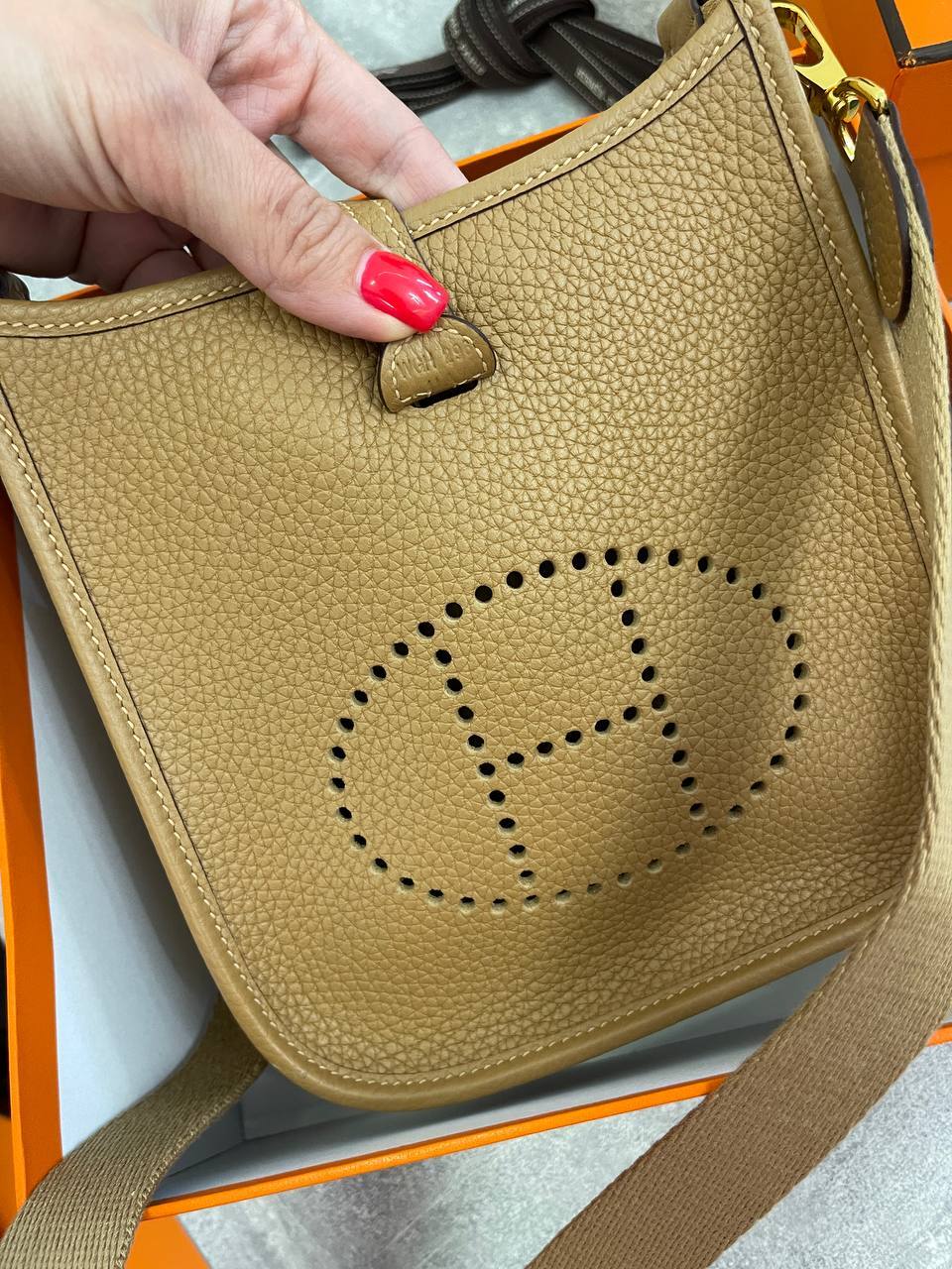 Эта мини-сумка станет верным помощником для тех, кто ценит комфорт и стиль. Благодаря своему компактному размеру, Evelyne легко носить на плече, освобождая руки для других дел. Она идеально подходит для прогулок по городу, встреч с друзьями или романтических свиданий. Внутреннее пространство сумки позволяет удобно разместить все необходимые мелочи, такие как телефон, кошелек и косметику. Каждая деталь, от застежки до подкладки, выполнена с высочайшим качеством, что подчеркивает статус бренда Hermes.