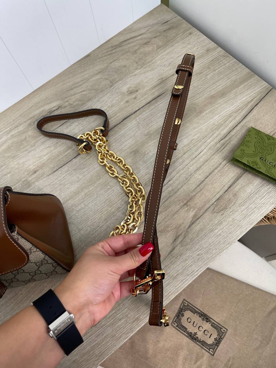Выбор сумки от Gucci — это не просто покупка, это инвестиция в ваш стиль и имидж. Каждая женщина, обладая такой сумкой, чувствует себя уверенно и стильно. Она притягивает взгляды и вызывает восхищение окружающих, подчеркивая вашу уникальность и индивидуальность. Благодаря продуманному дизайну и высококачественным материалам, эта модель станет вашим верным спутником на долгое время, радуя вас своим безупречным видом и функциональностью. Не упустите возможность добавить в свою коллекцию этот шедевр от Gucci, который станет настоящим украшением вашего гардероба.
