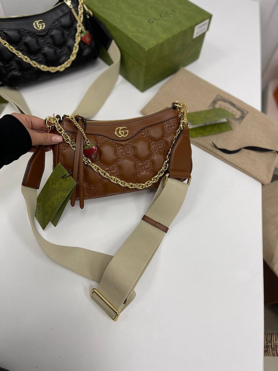 Эта сумка через плечо станет верным спутником как на деловых встречах, так и на вечерних выходах. Благодаря своему универсальному дизайну, Gucci BP-27109 легко вписывается в любой стиль — от классического до кэжуал. Каждая деталь, начиная от изысканной фурнитуры и заканчивая тщательно подобранными цветами, говорит о высоком уровне исполнения и внимании к деталям. Модницы, выбирающие эту сумку, могут быть уверены, что они делают ставку на качество и стиль, которые никогда не выйдут из моды.